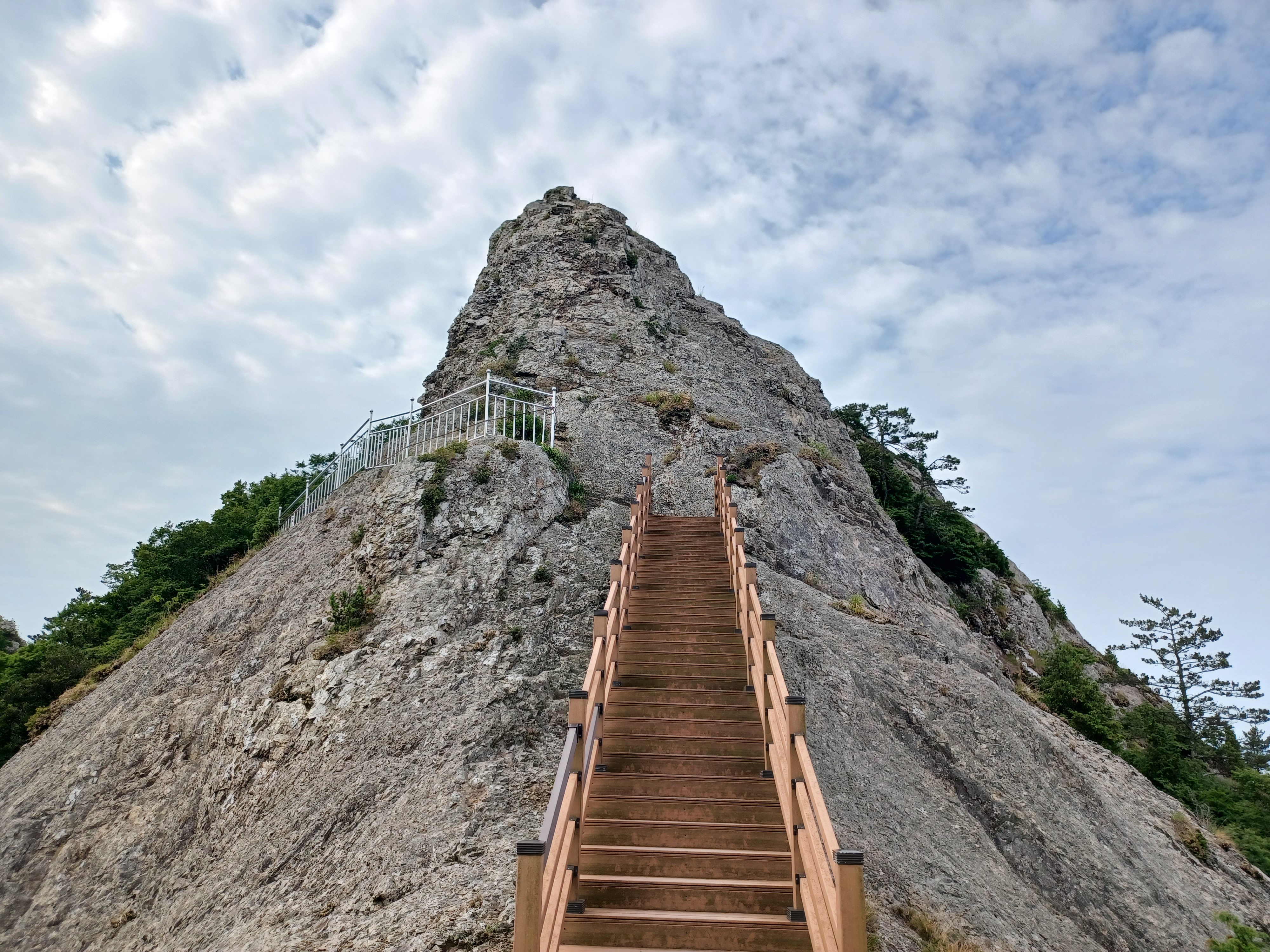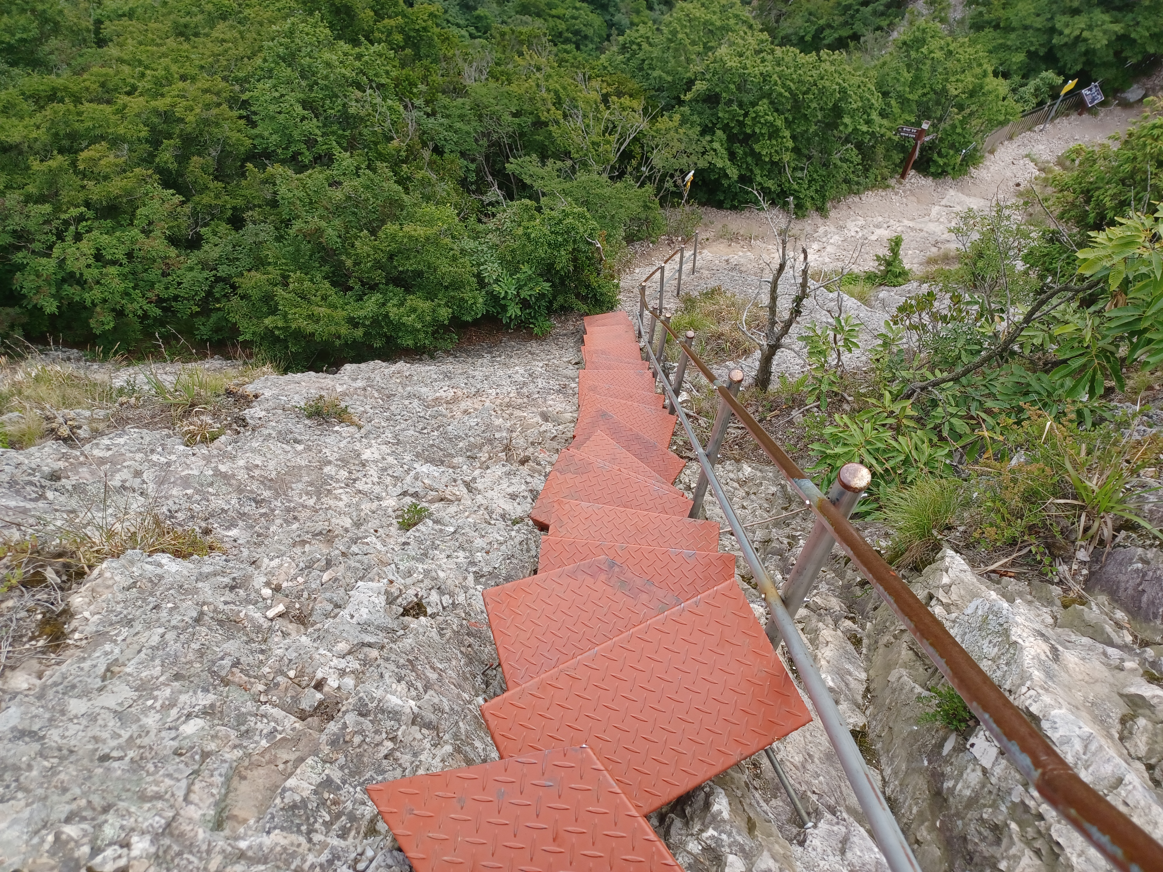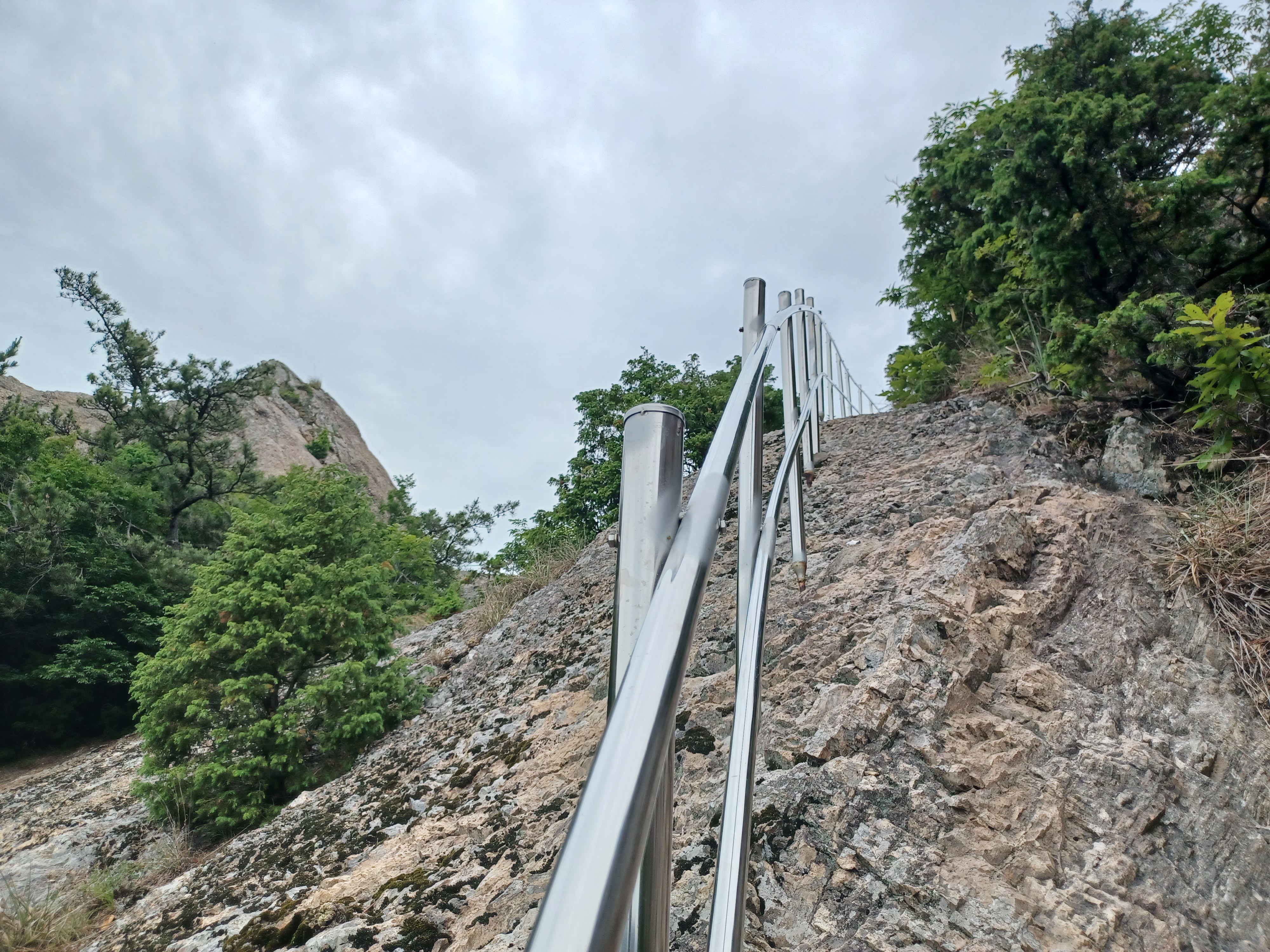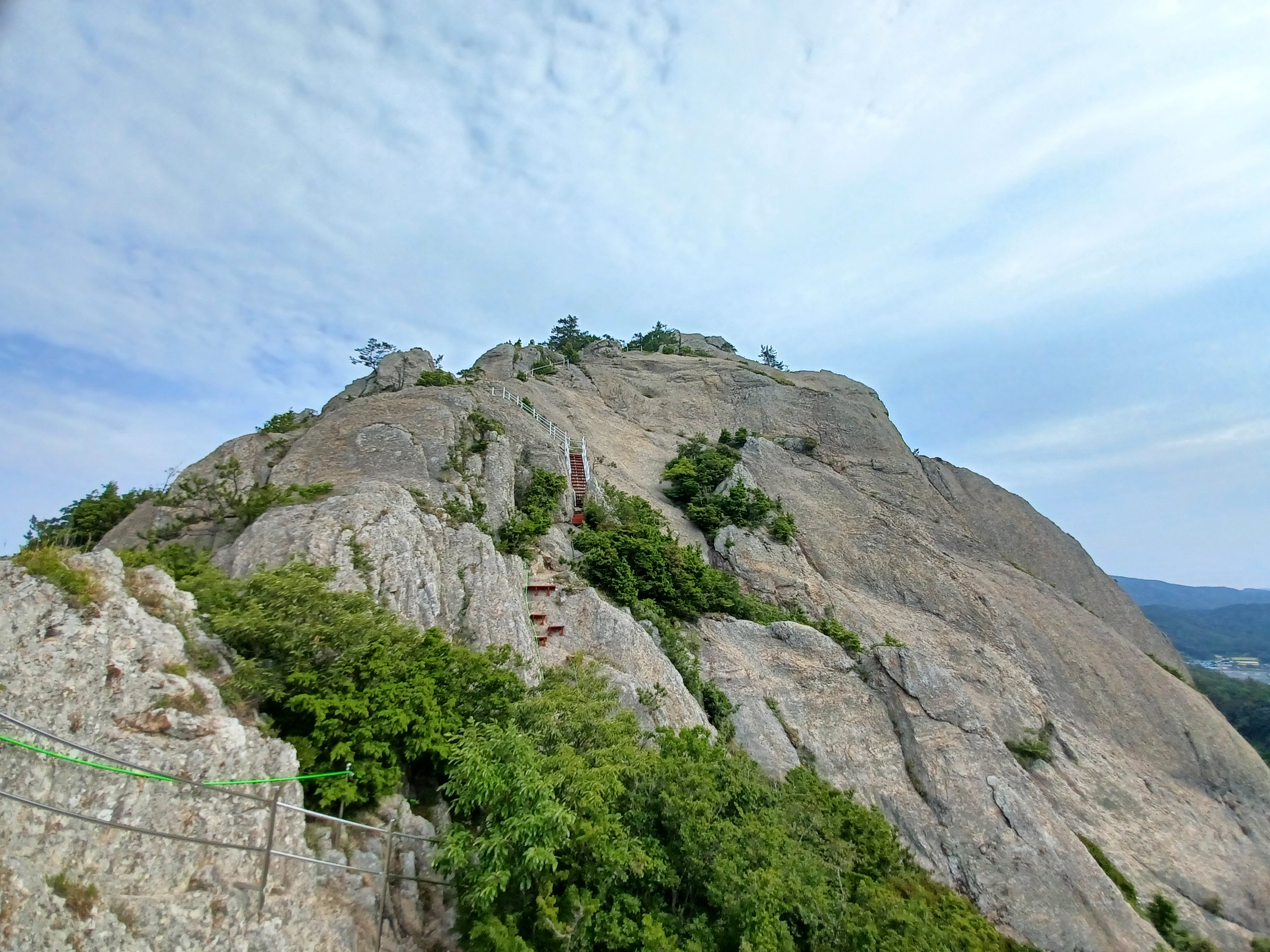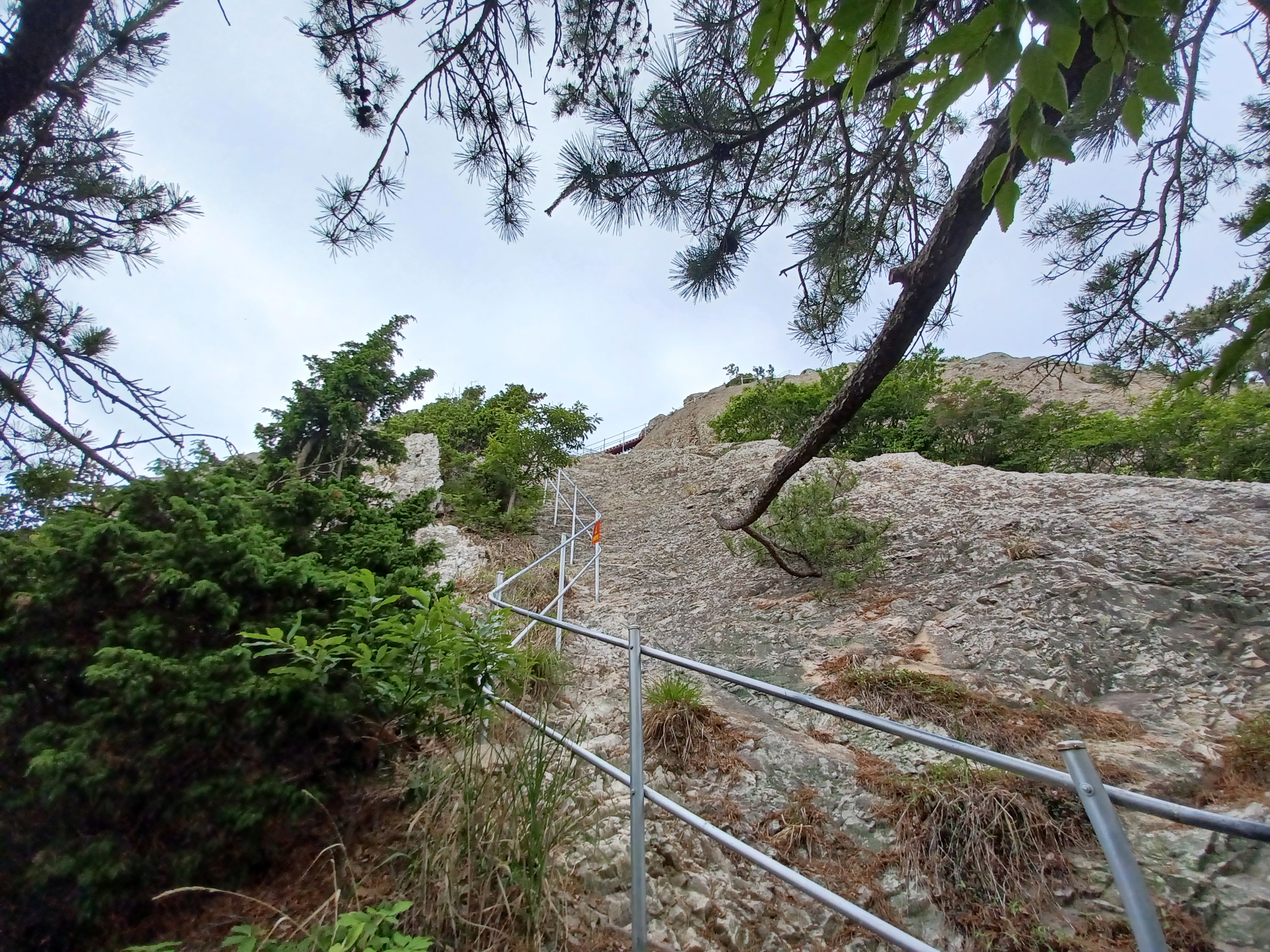 칼바위를 조망하기 위해 오르는 급사면 안전장치는 링으로...