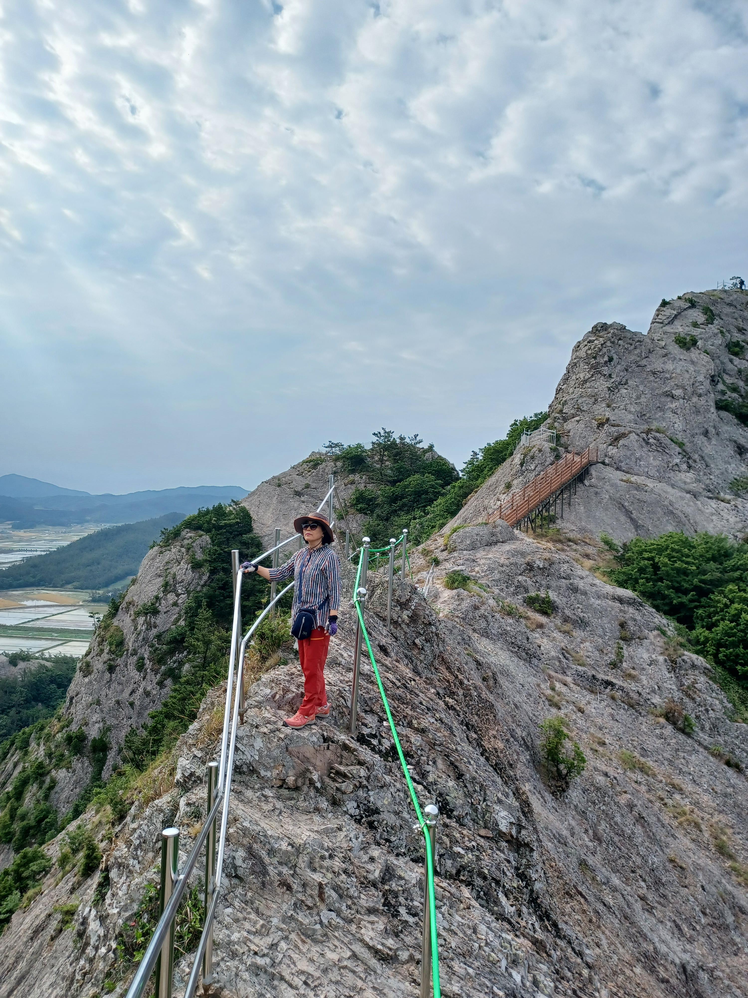 우, 좌 두 번의 우회를 한 뒤 안전펜스를 잡고 오른다.