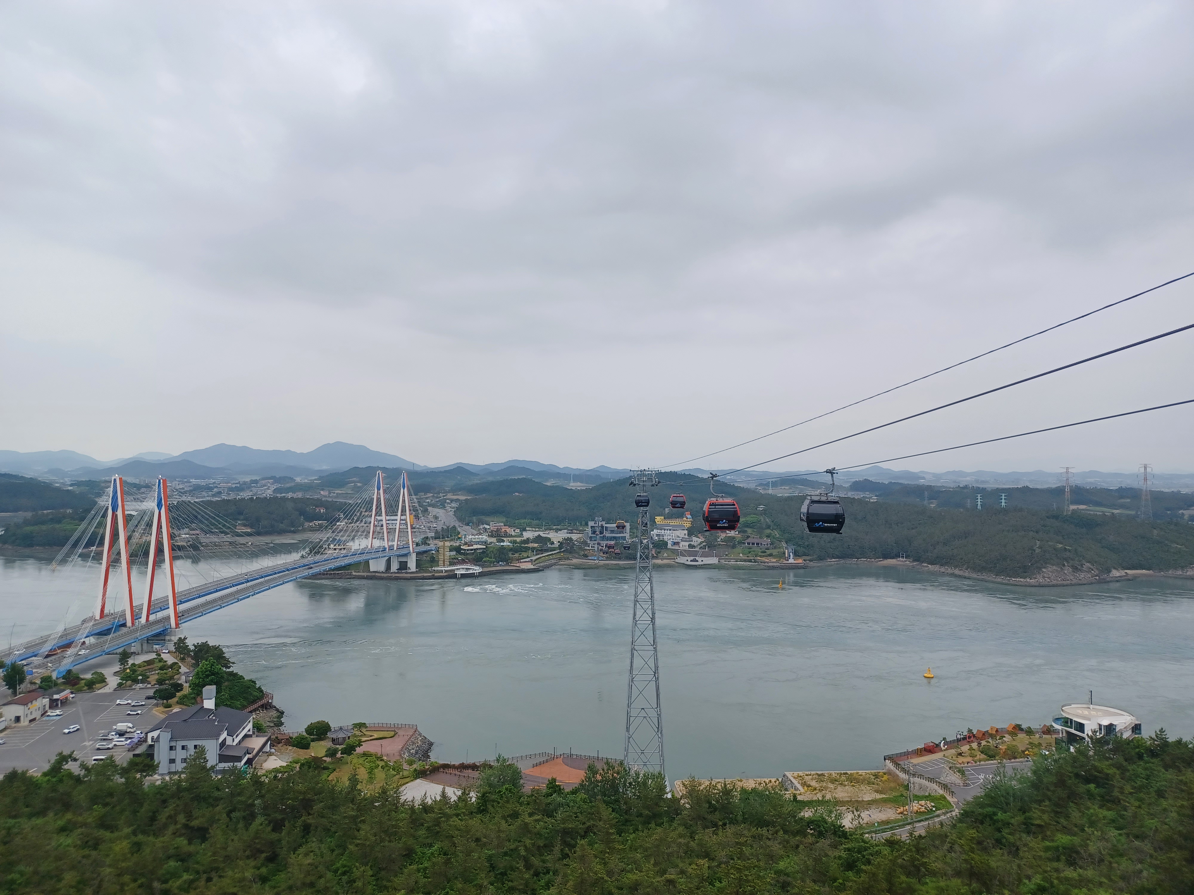 진도타워와 울돌목을 오가는 케이블카는 쉼 없이 회전을 하고...