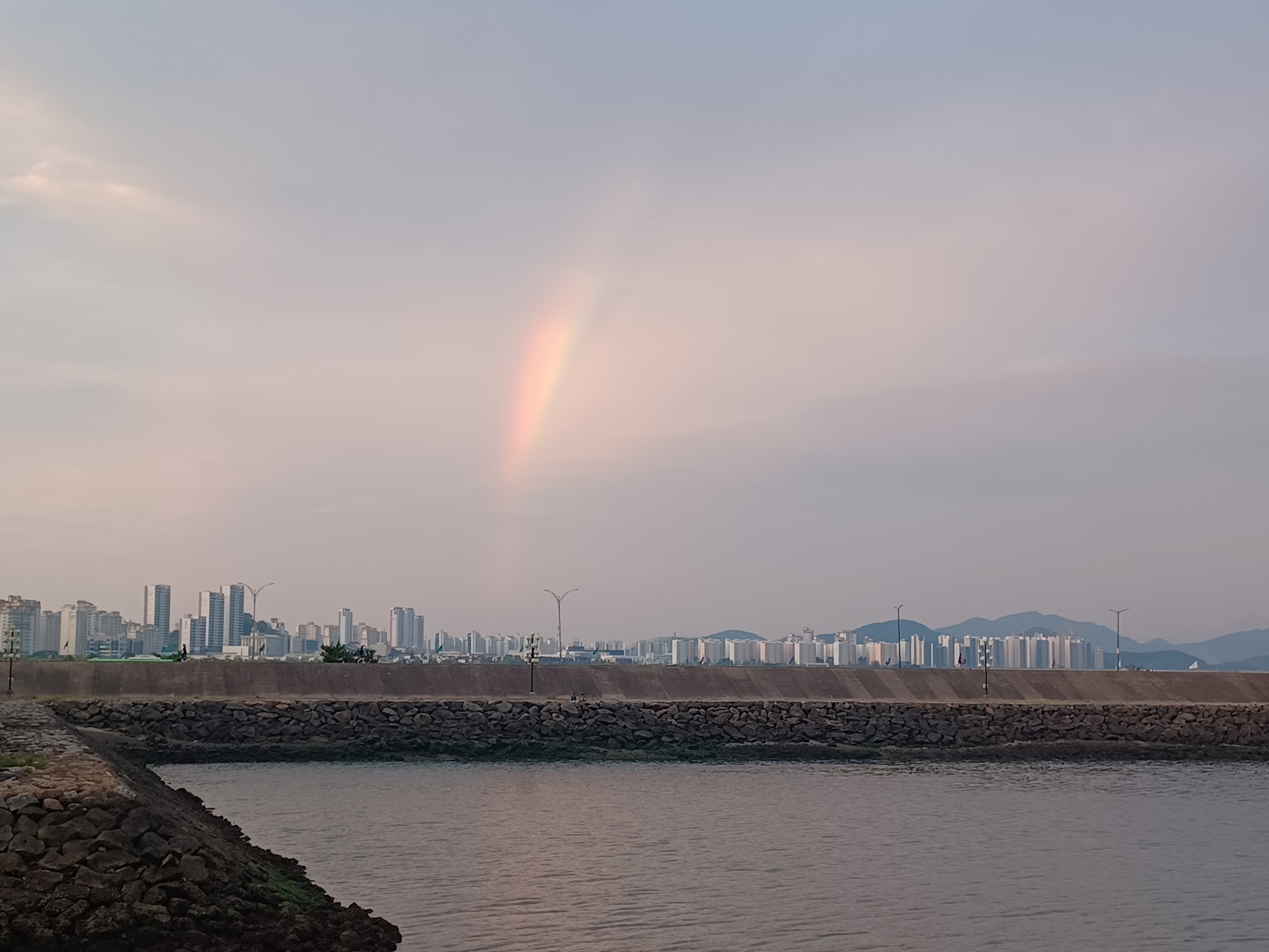 저녁을 먹고 나오니 타지인을 환영이라도 하듯이 저녁 하늘에 무지개가 반겨준다.