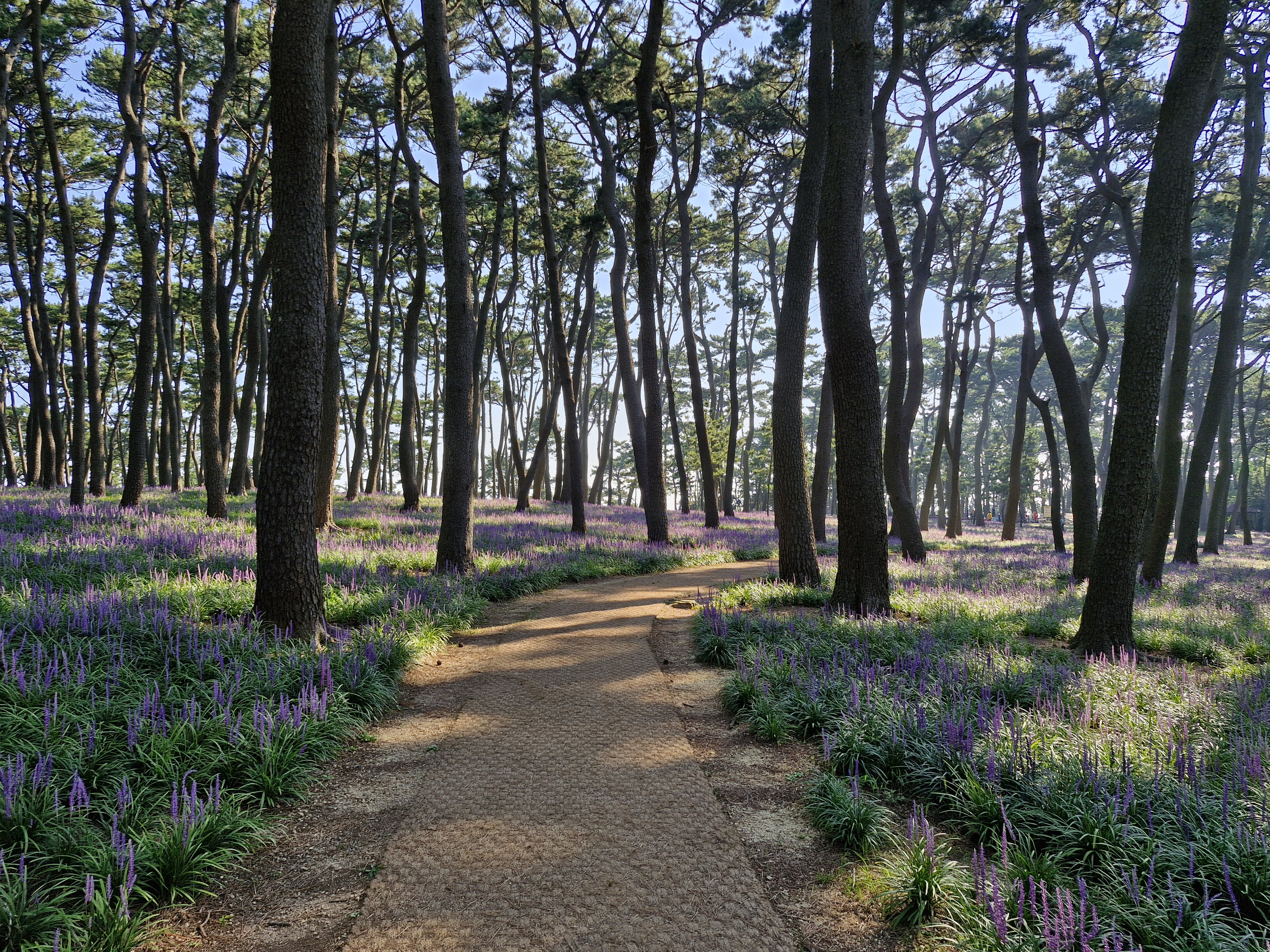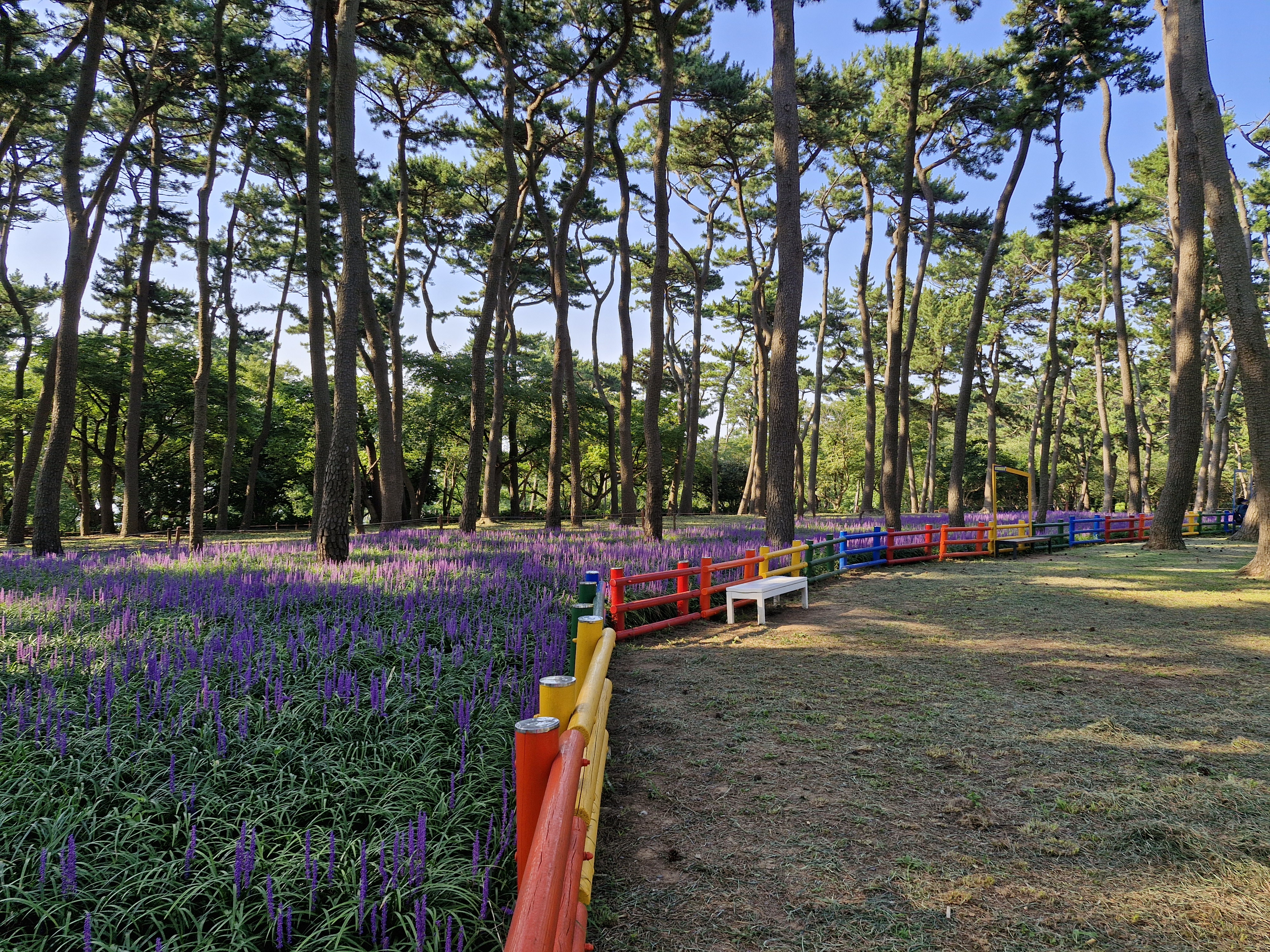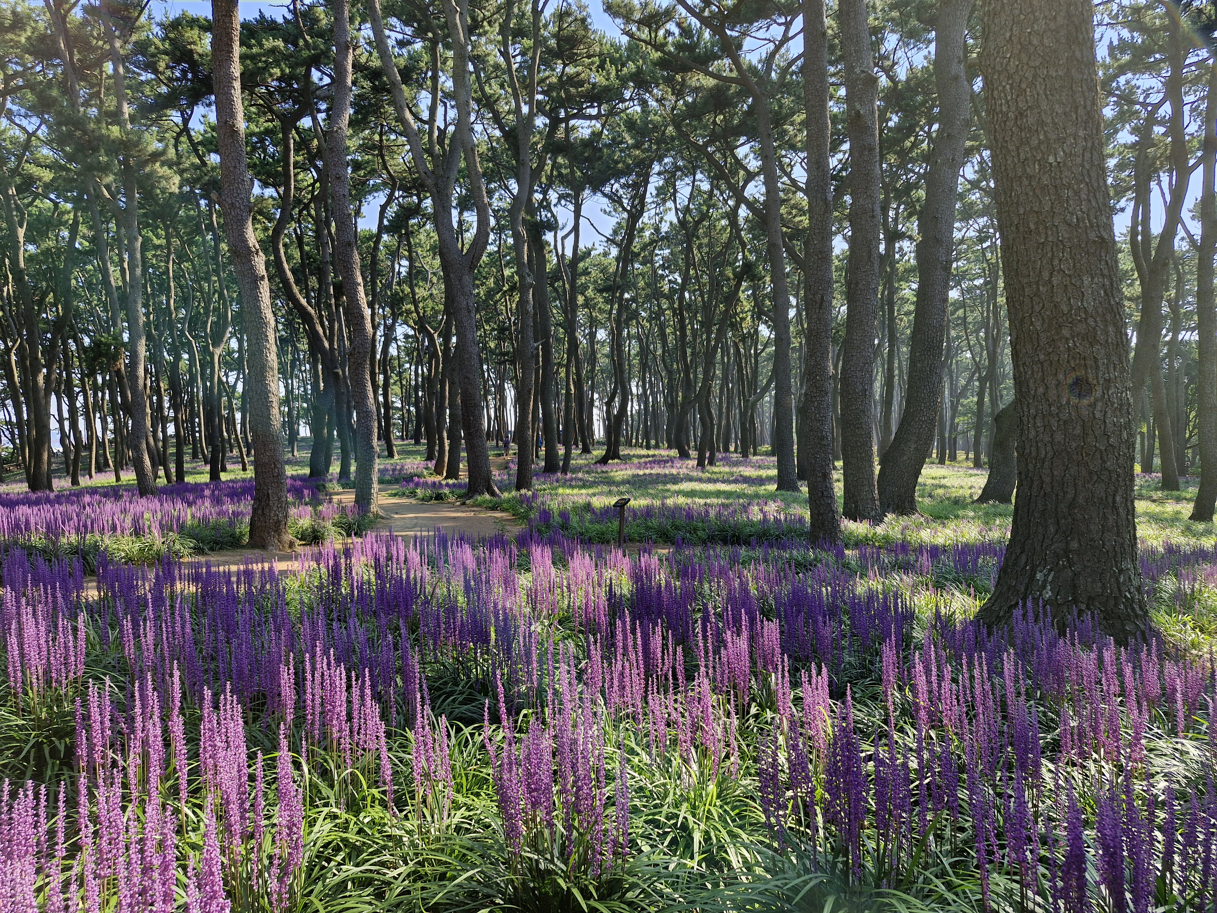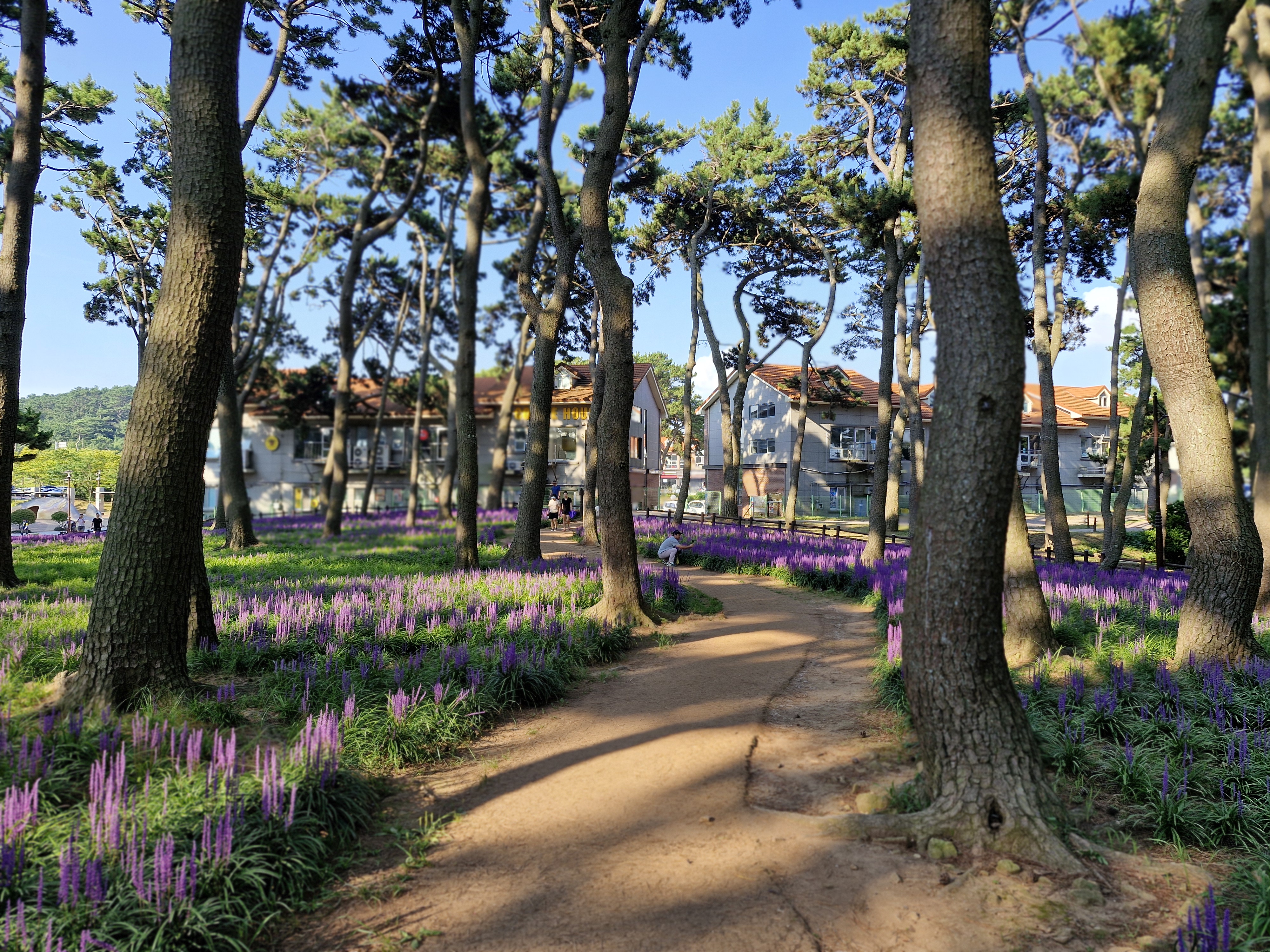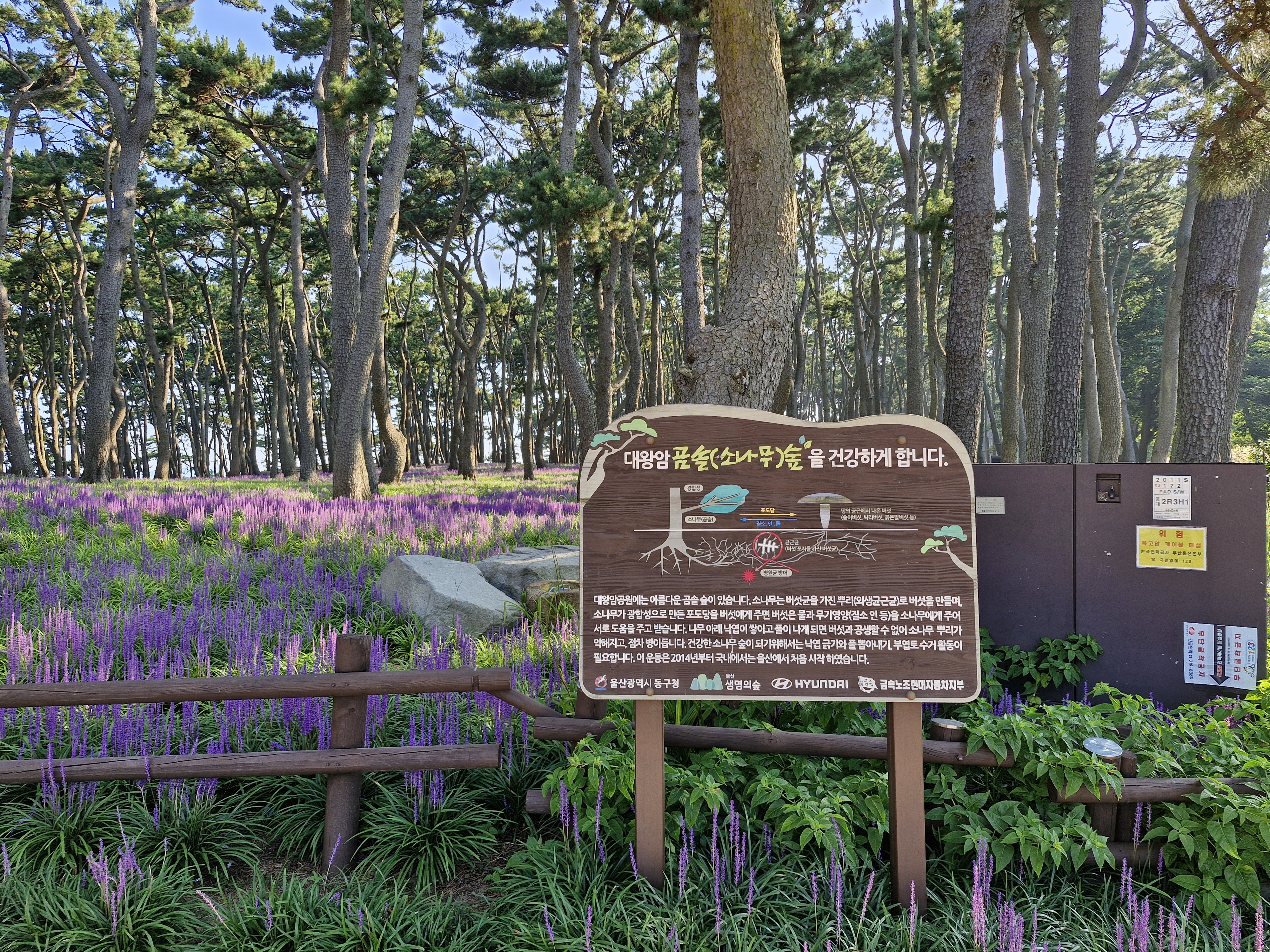 아름드리 해송과 어우러지는 보라색이 너무 이뽀이뽀 😀