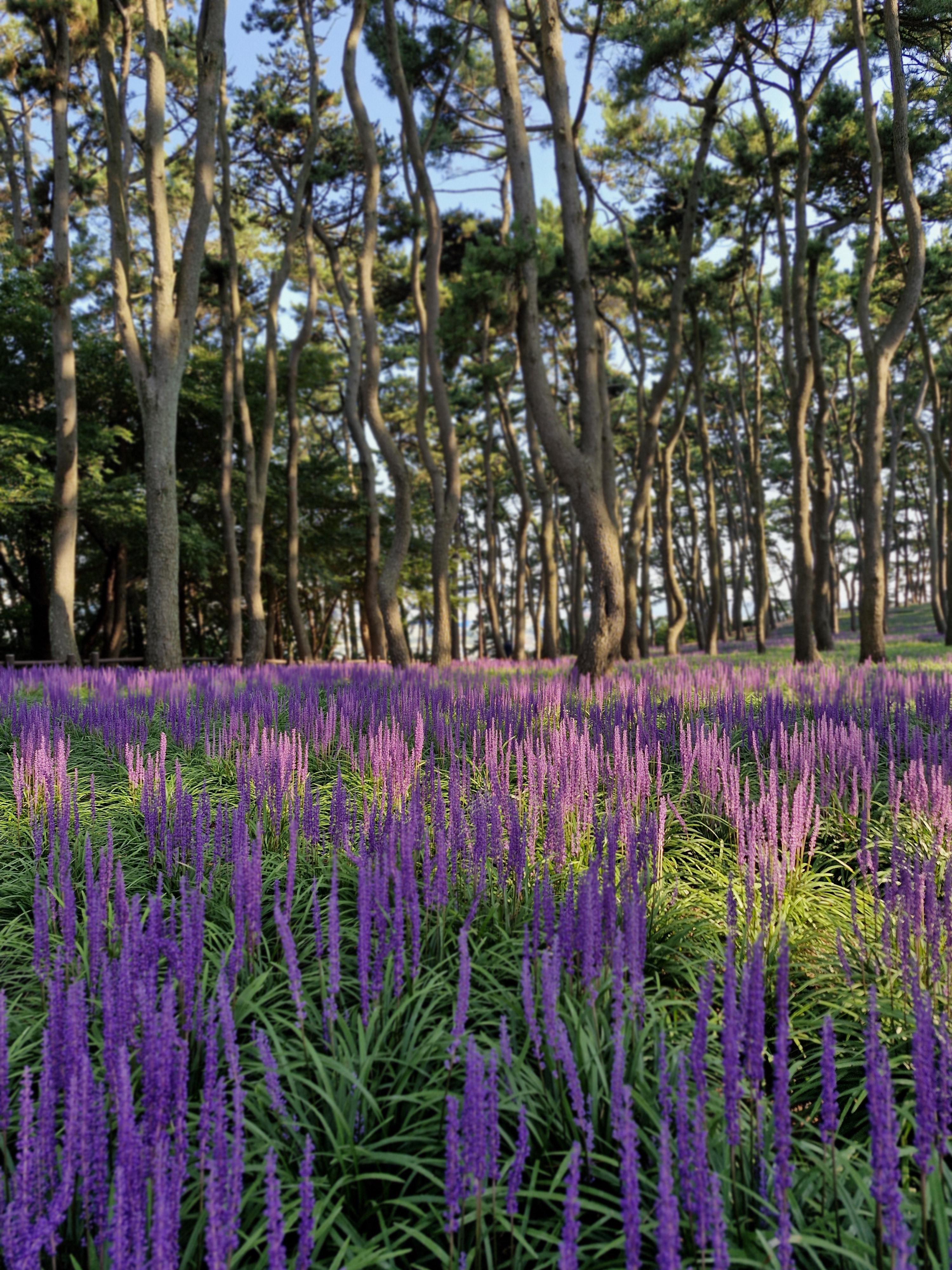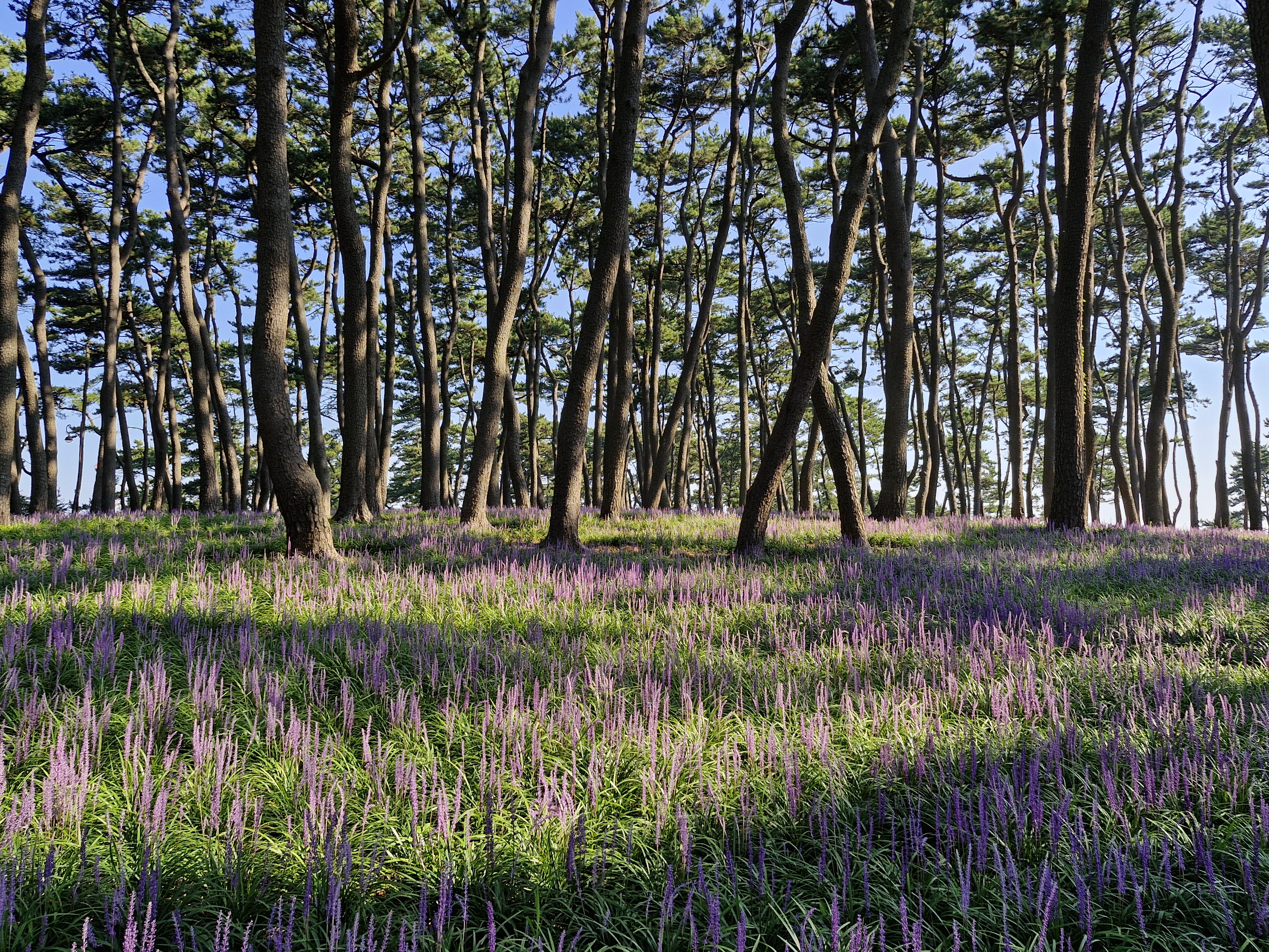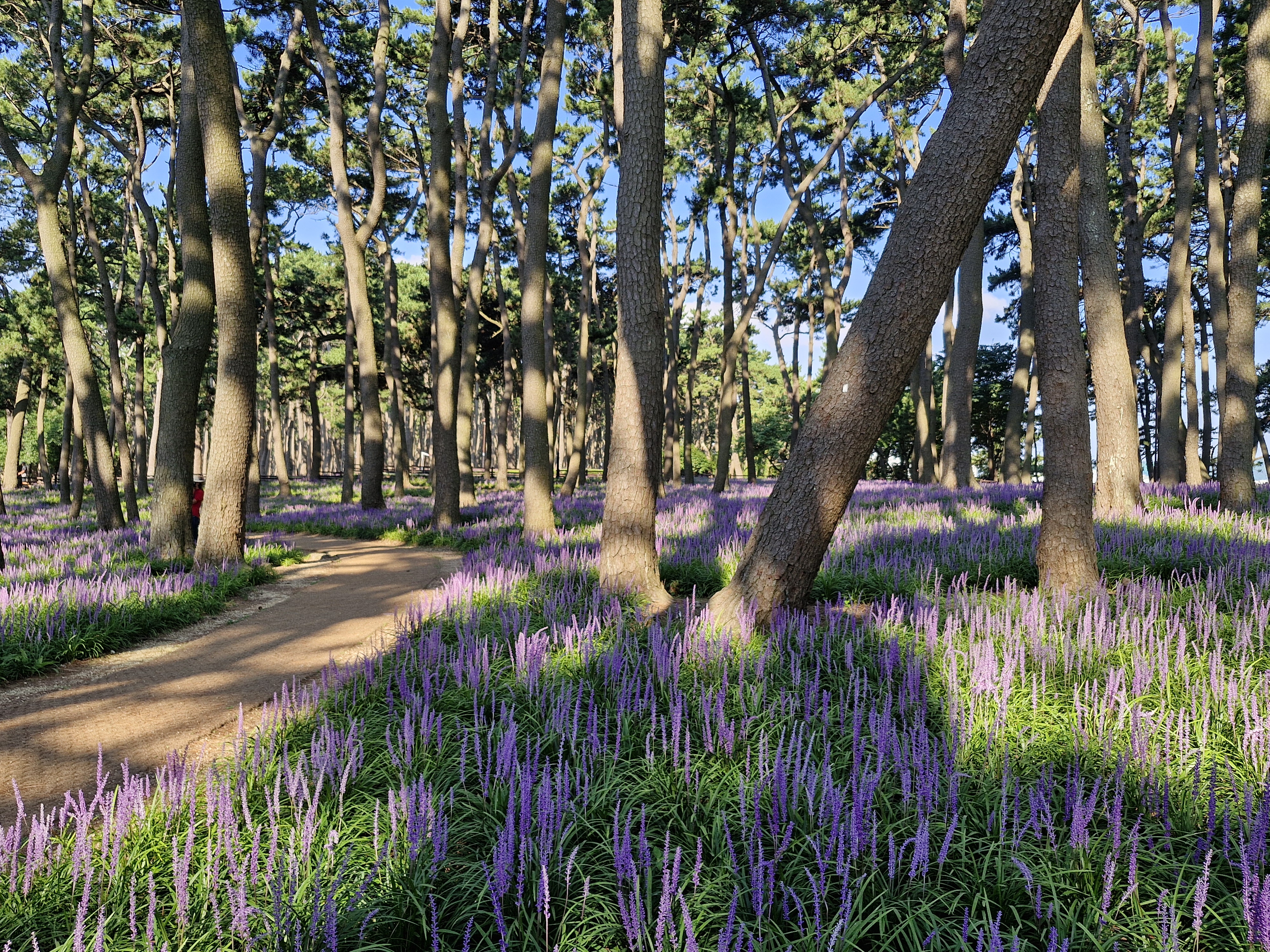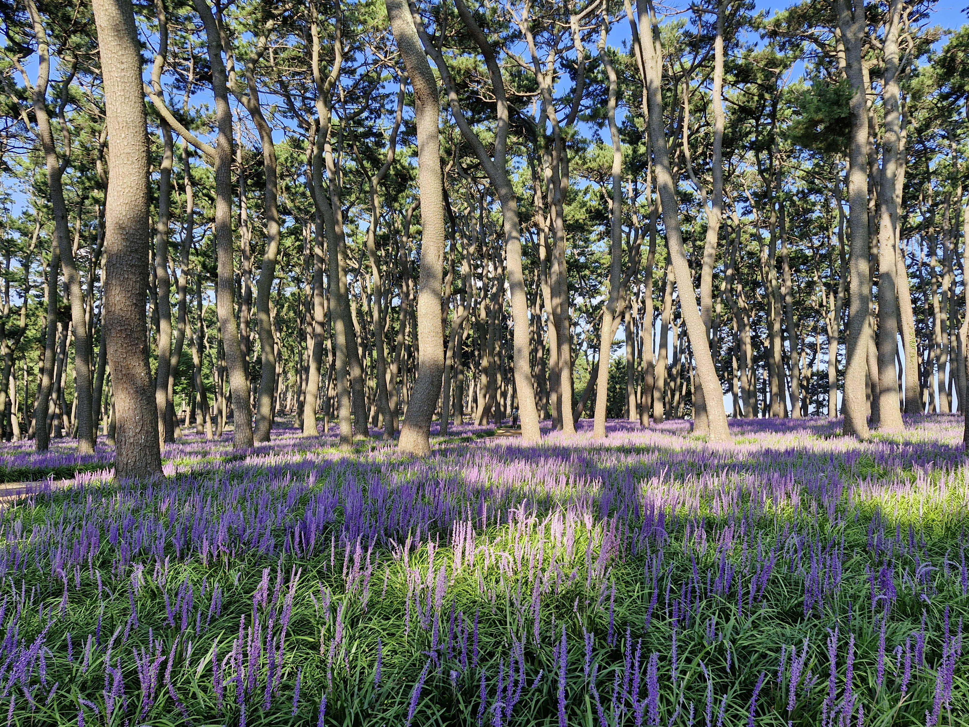 아름드리 해송과 어우러지는 보라색이 너무 이뽀이뽀 😀