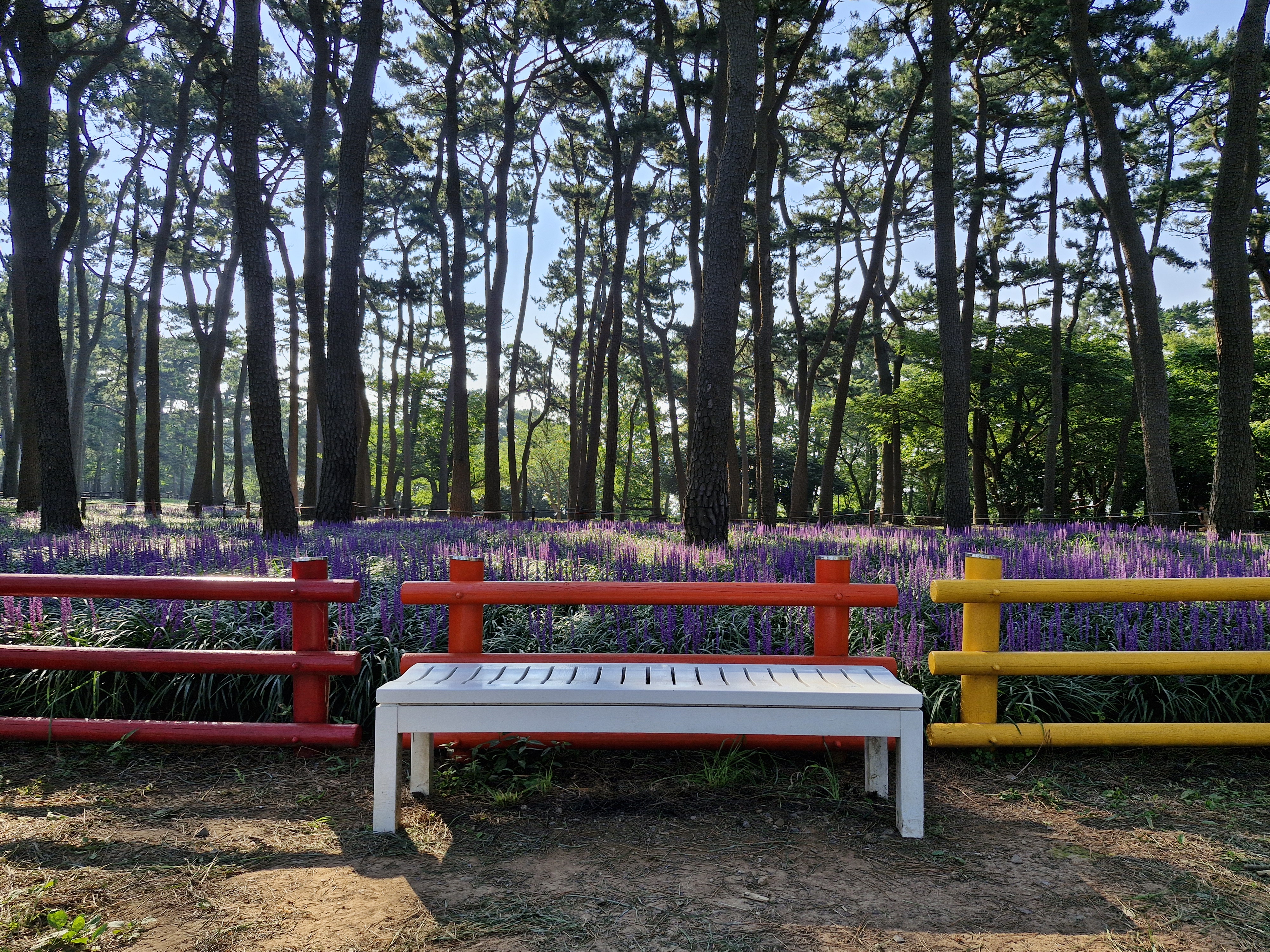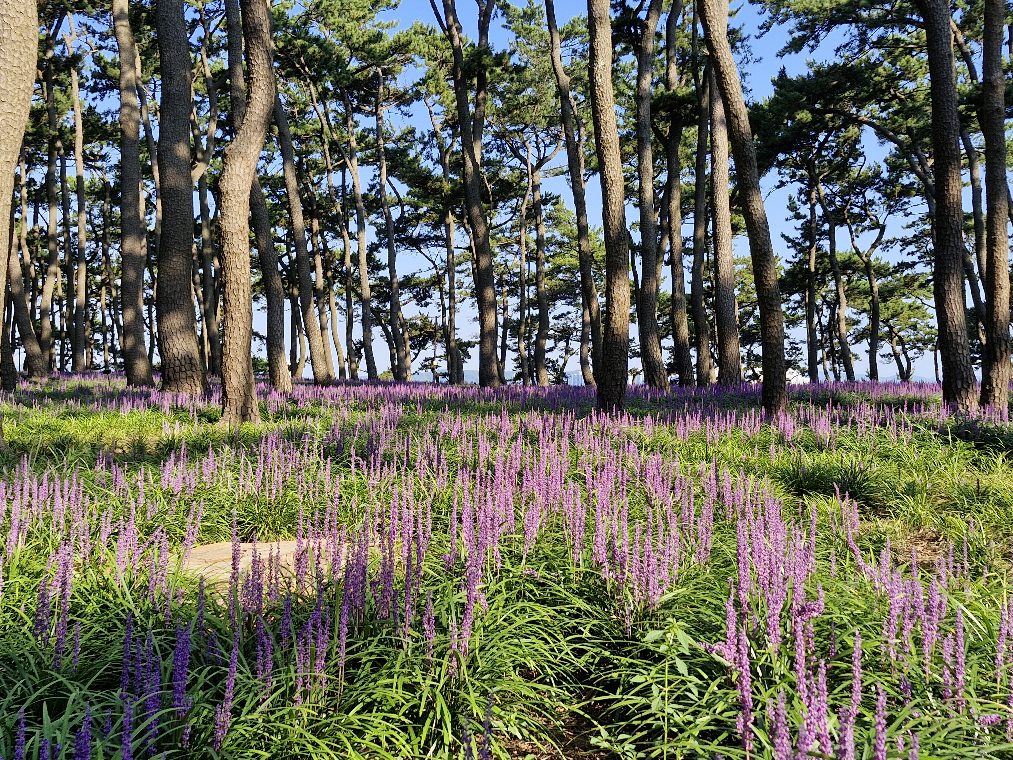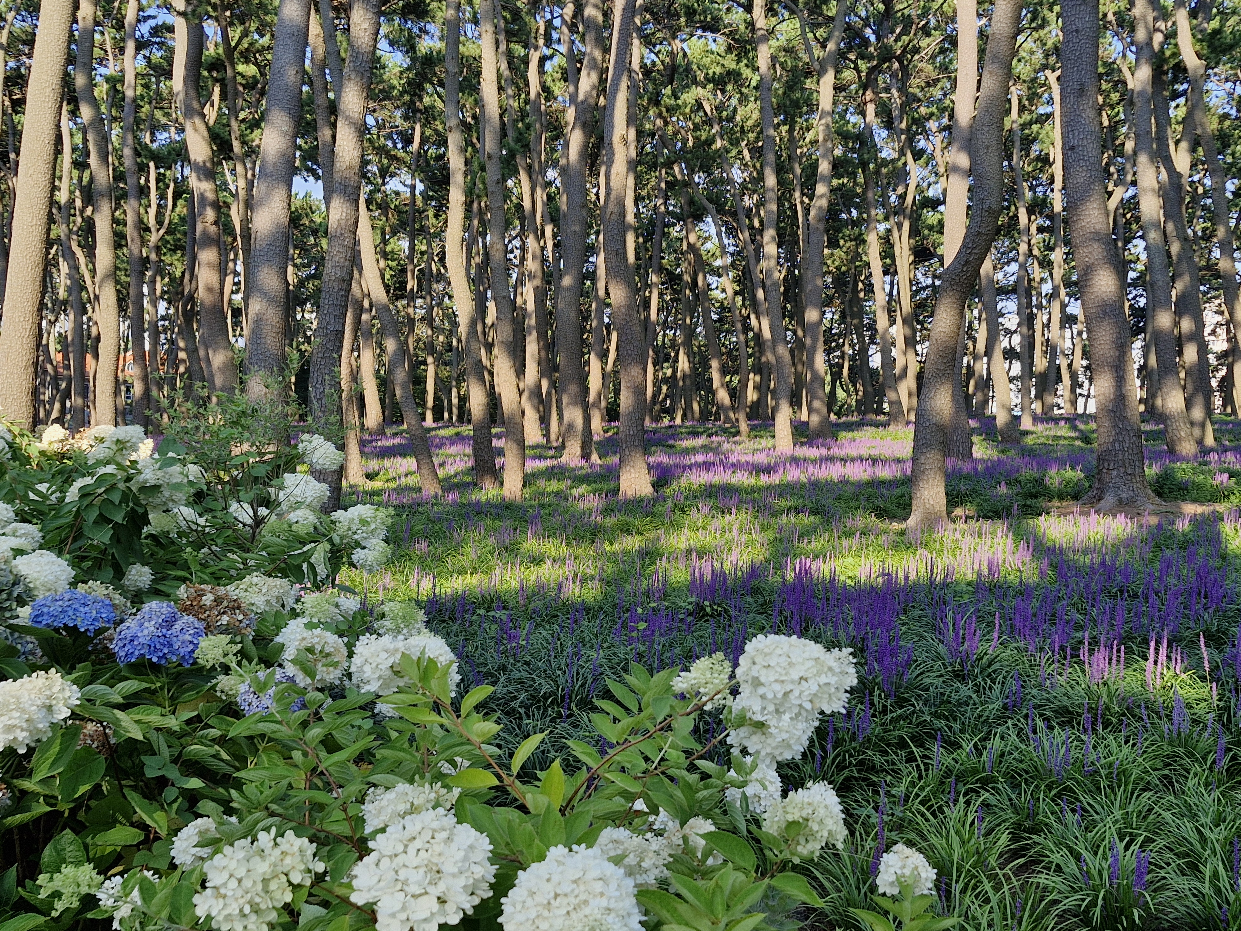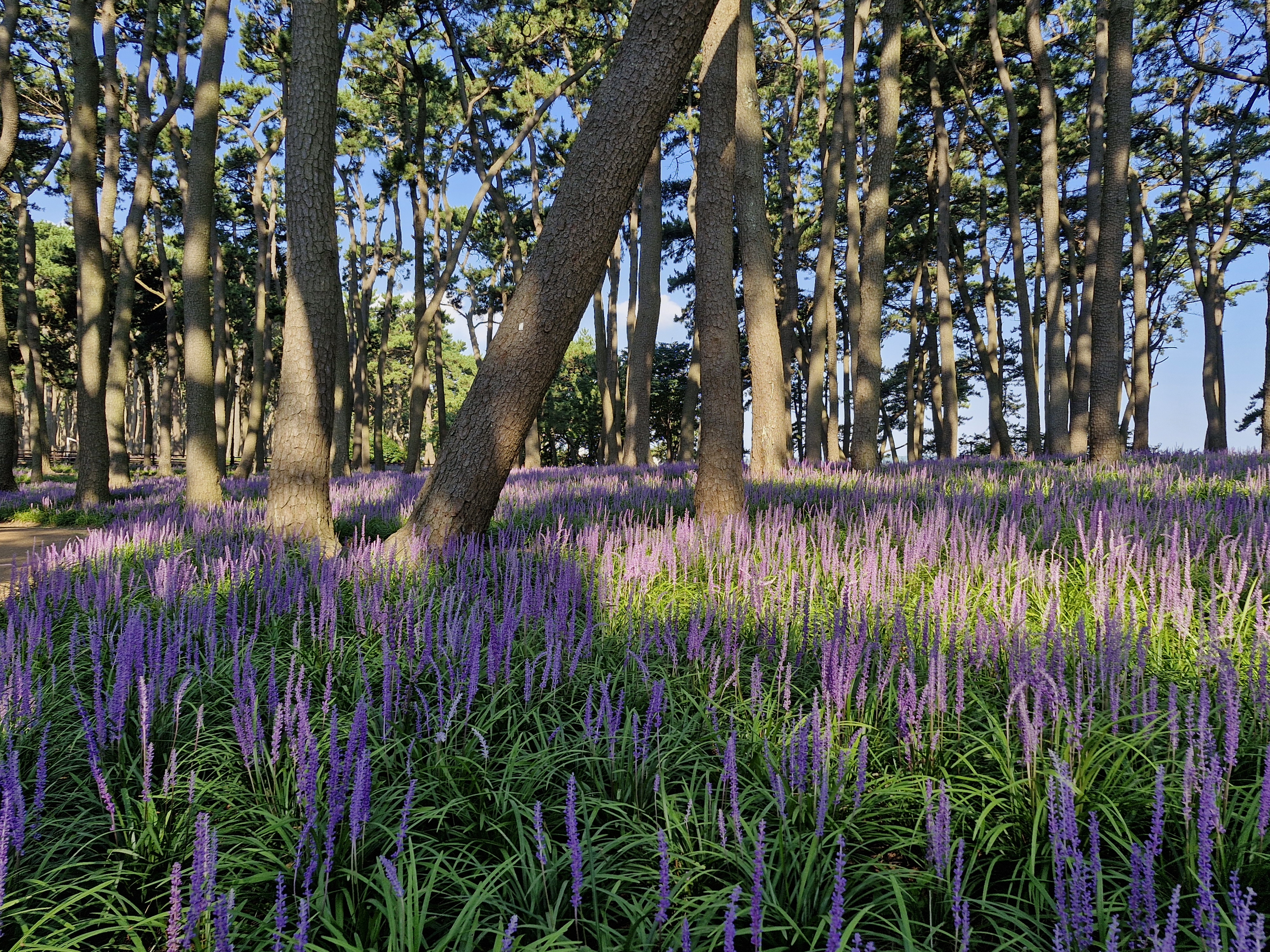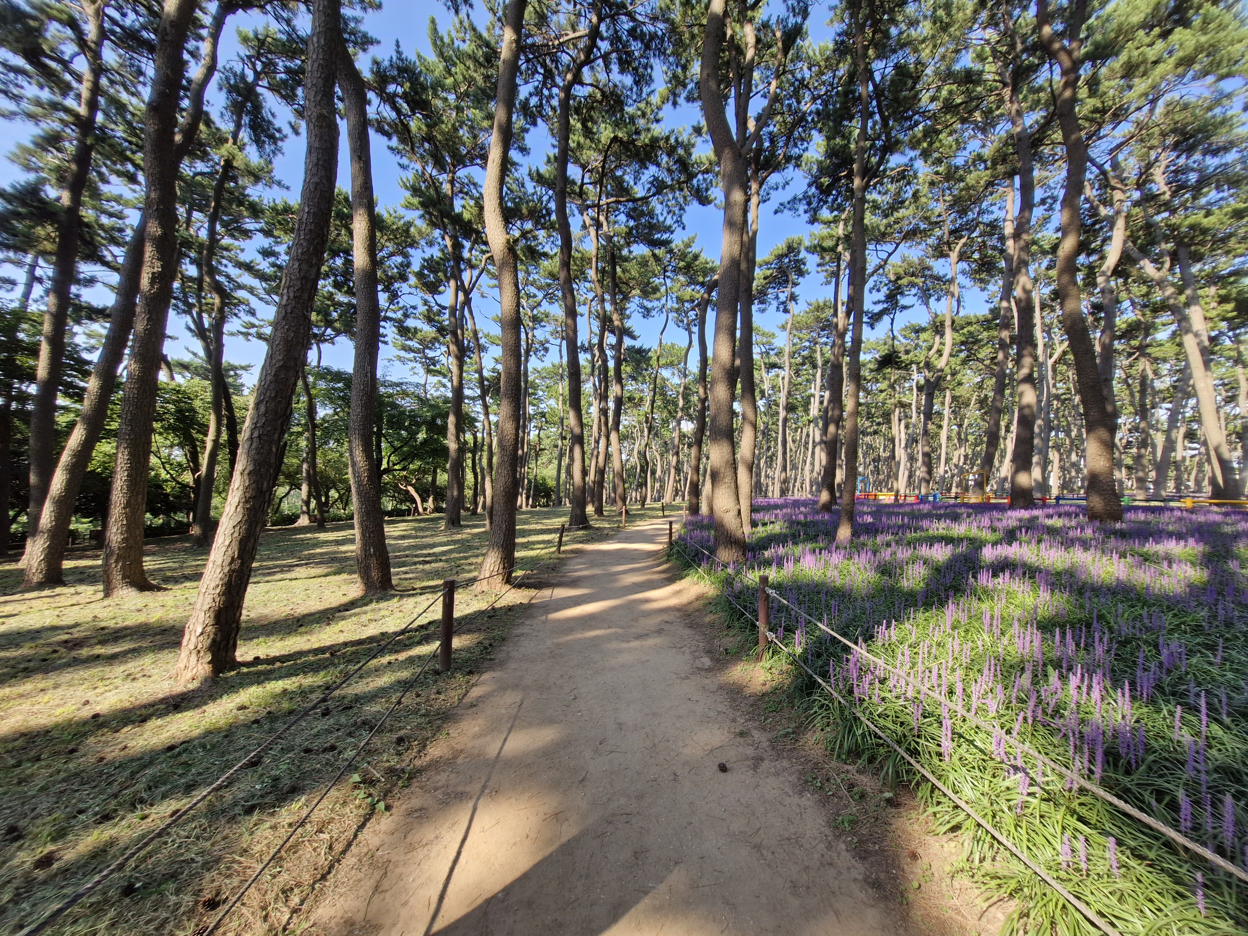 아름드리 해송과 어우러지는 보라색이 너무 이뽀이뽀 😀