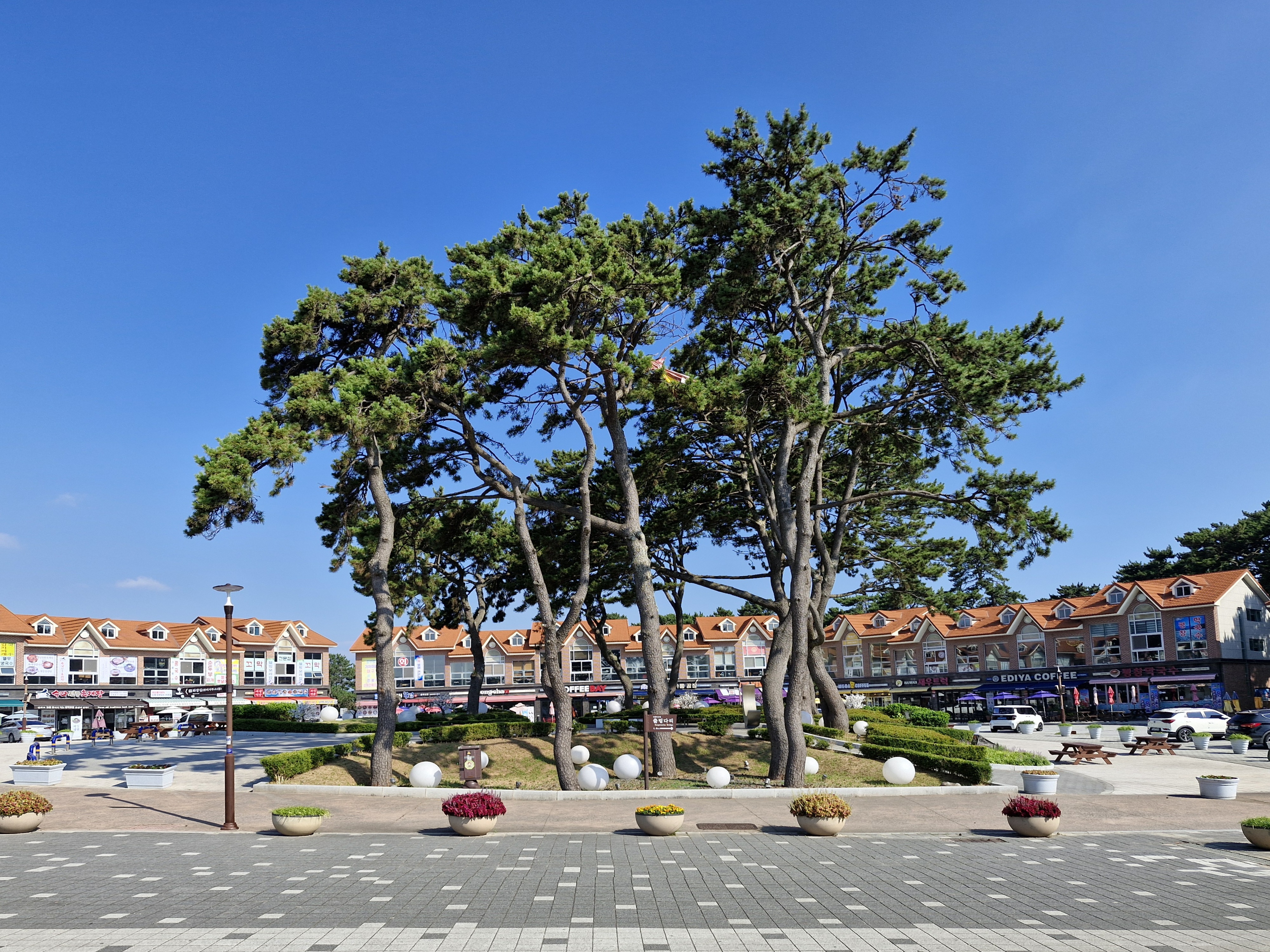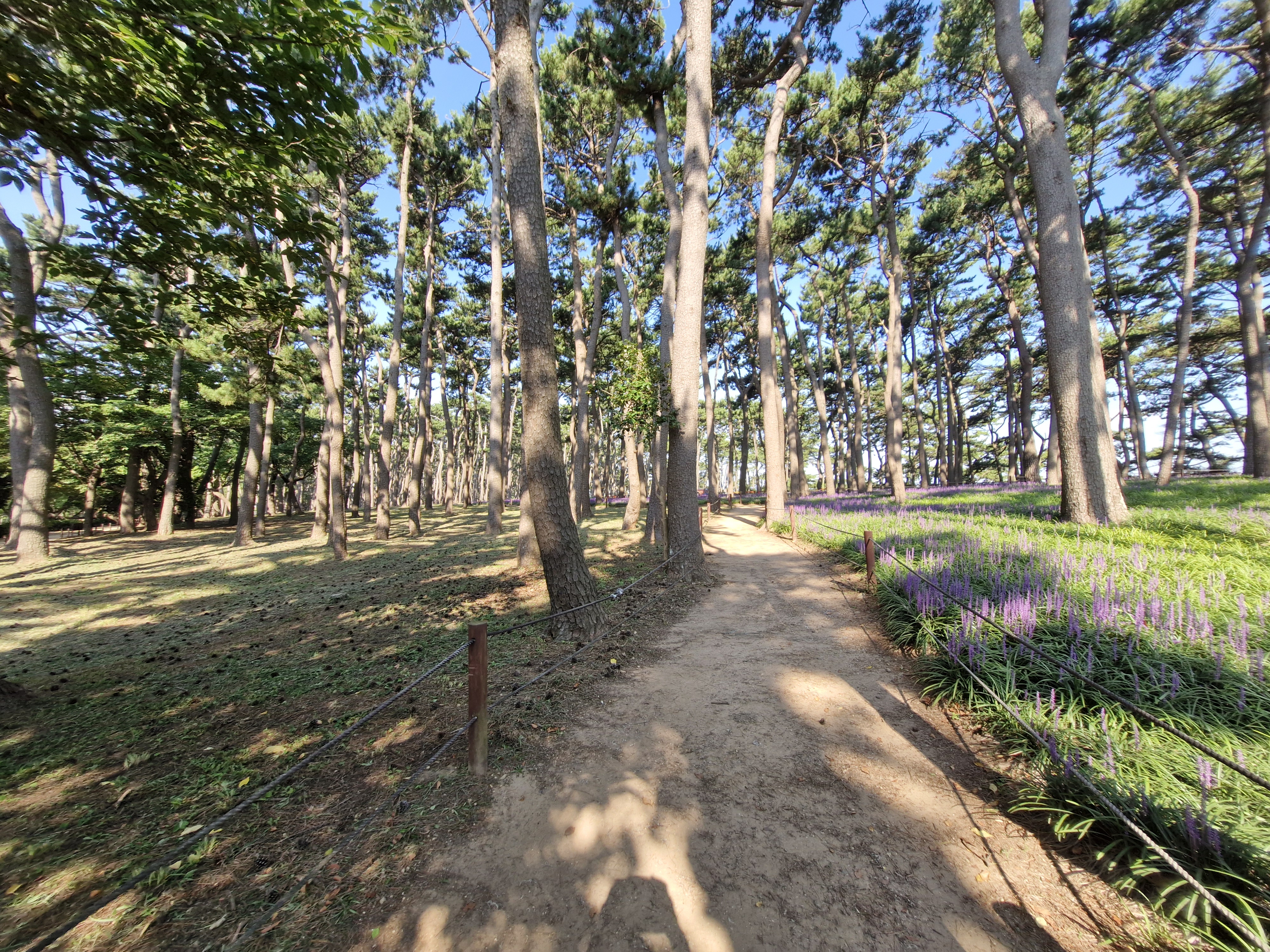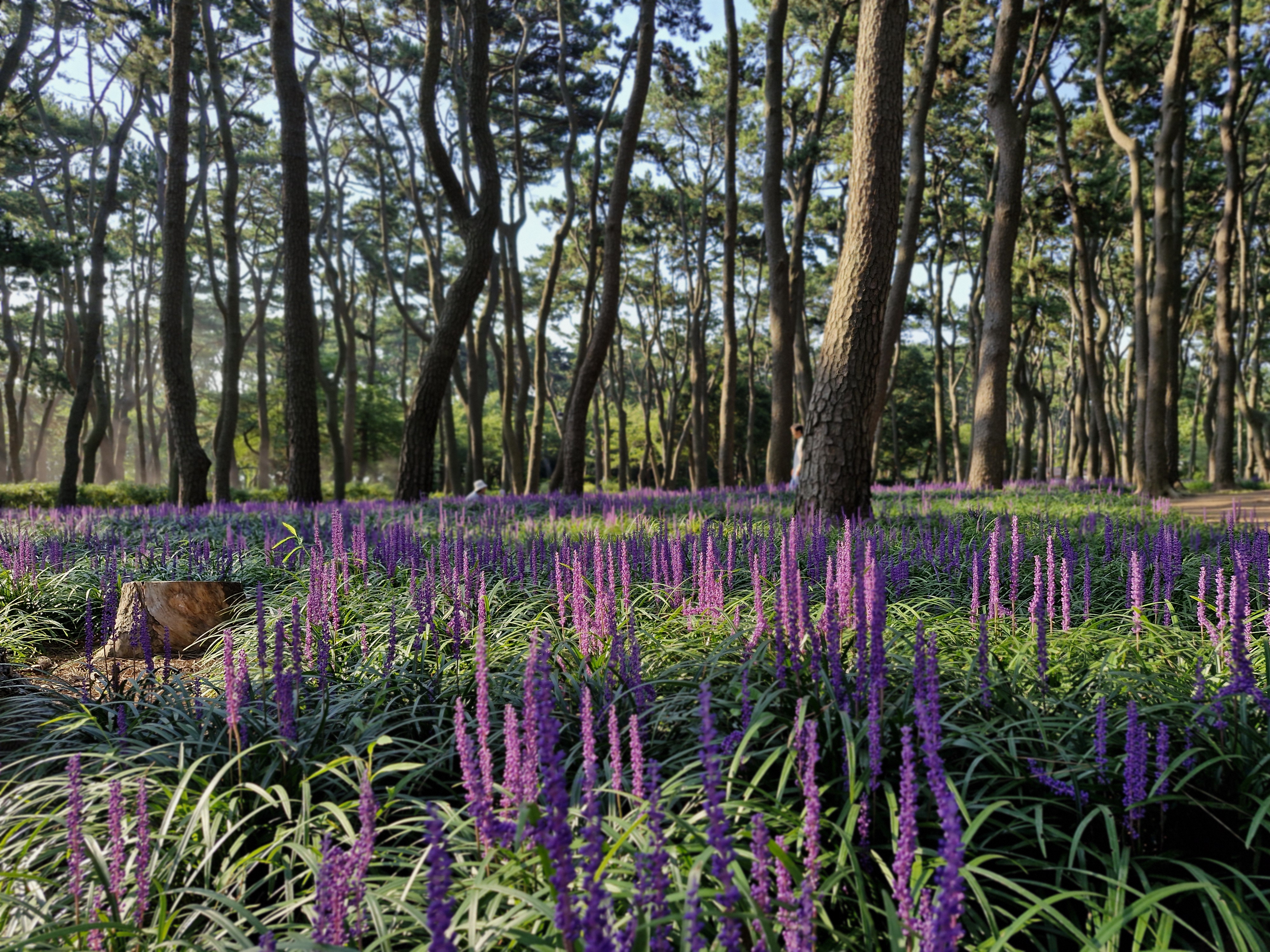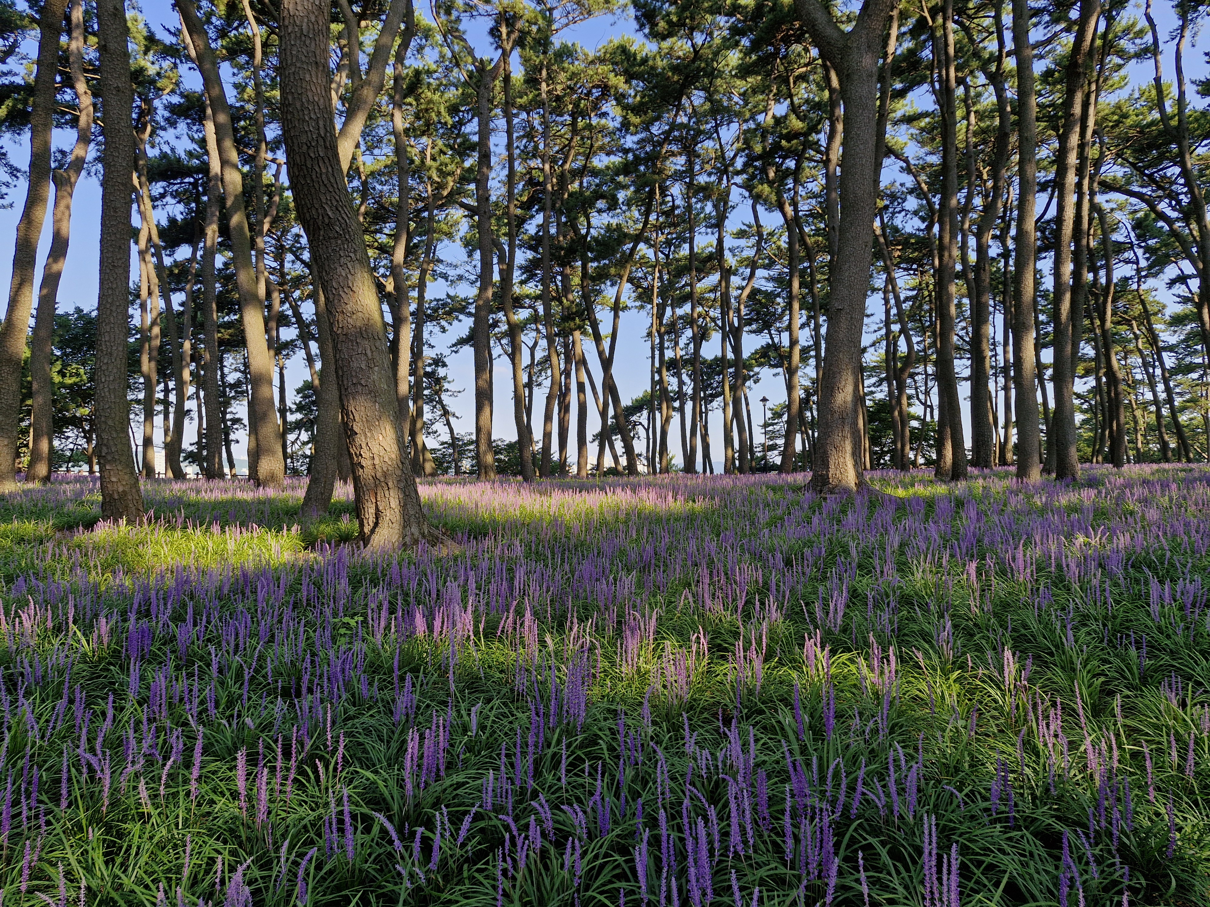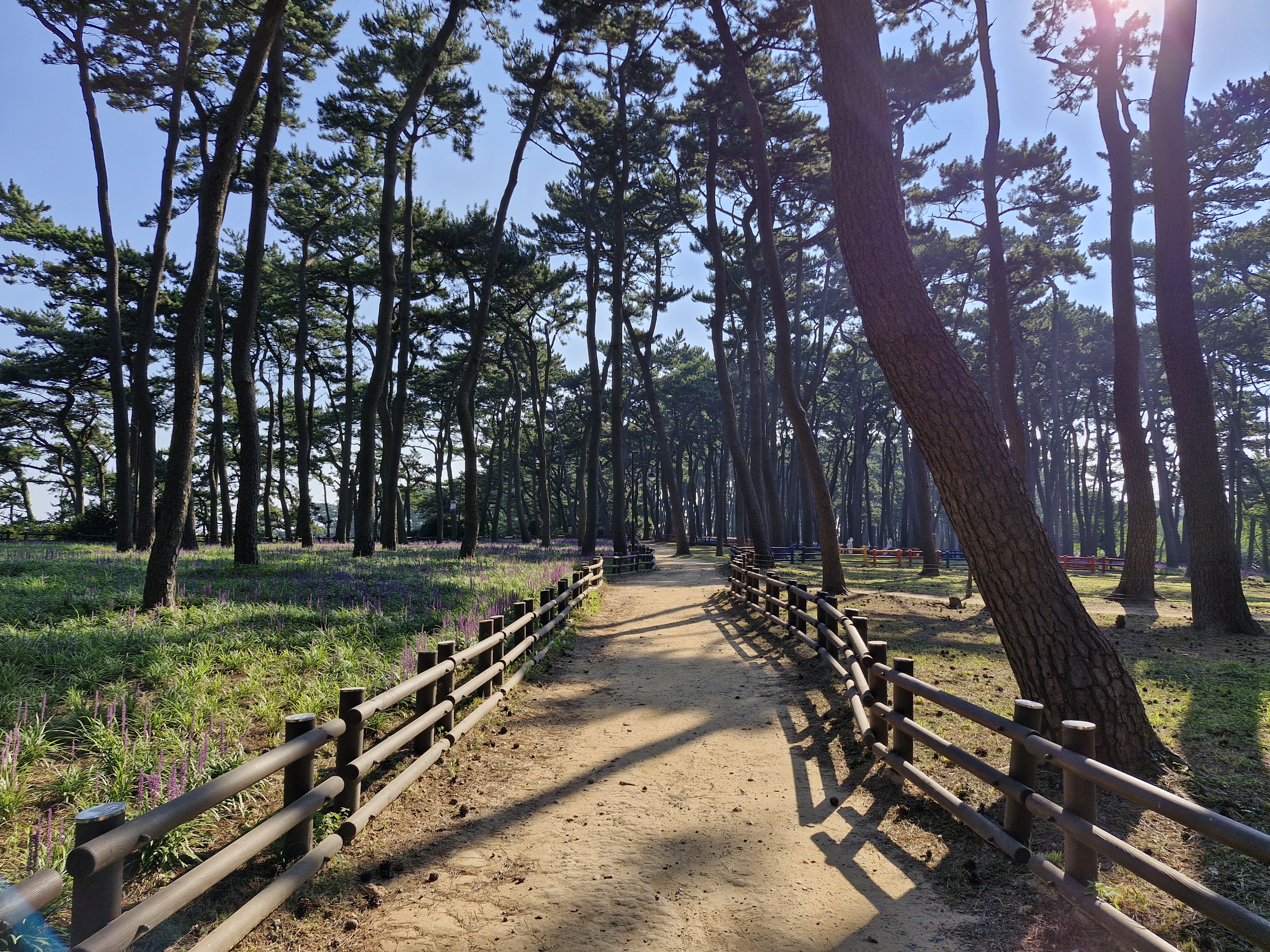 아름드리 해송과 어우러지는 보라색이 너무 이뽀이뽀 😀
