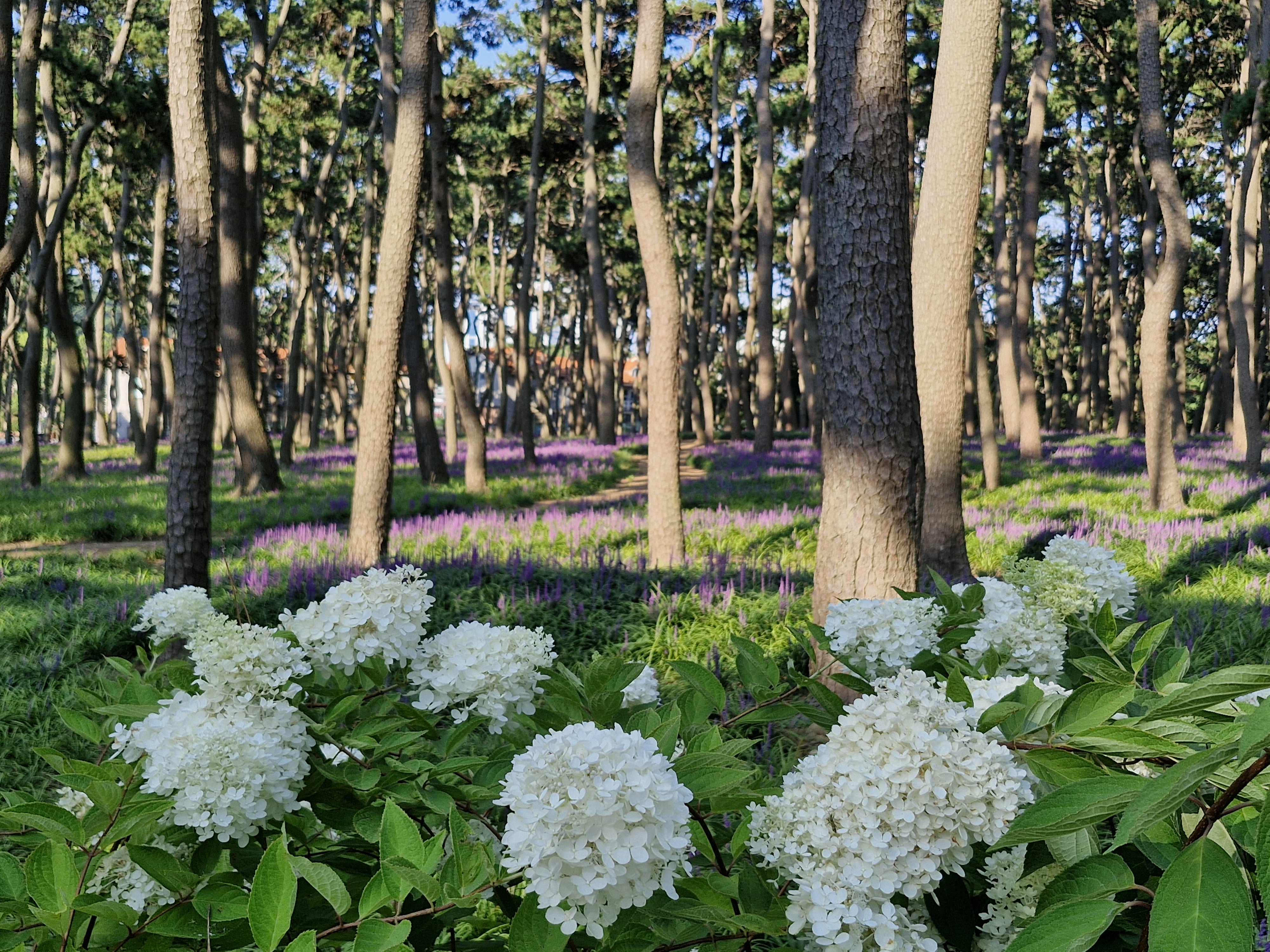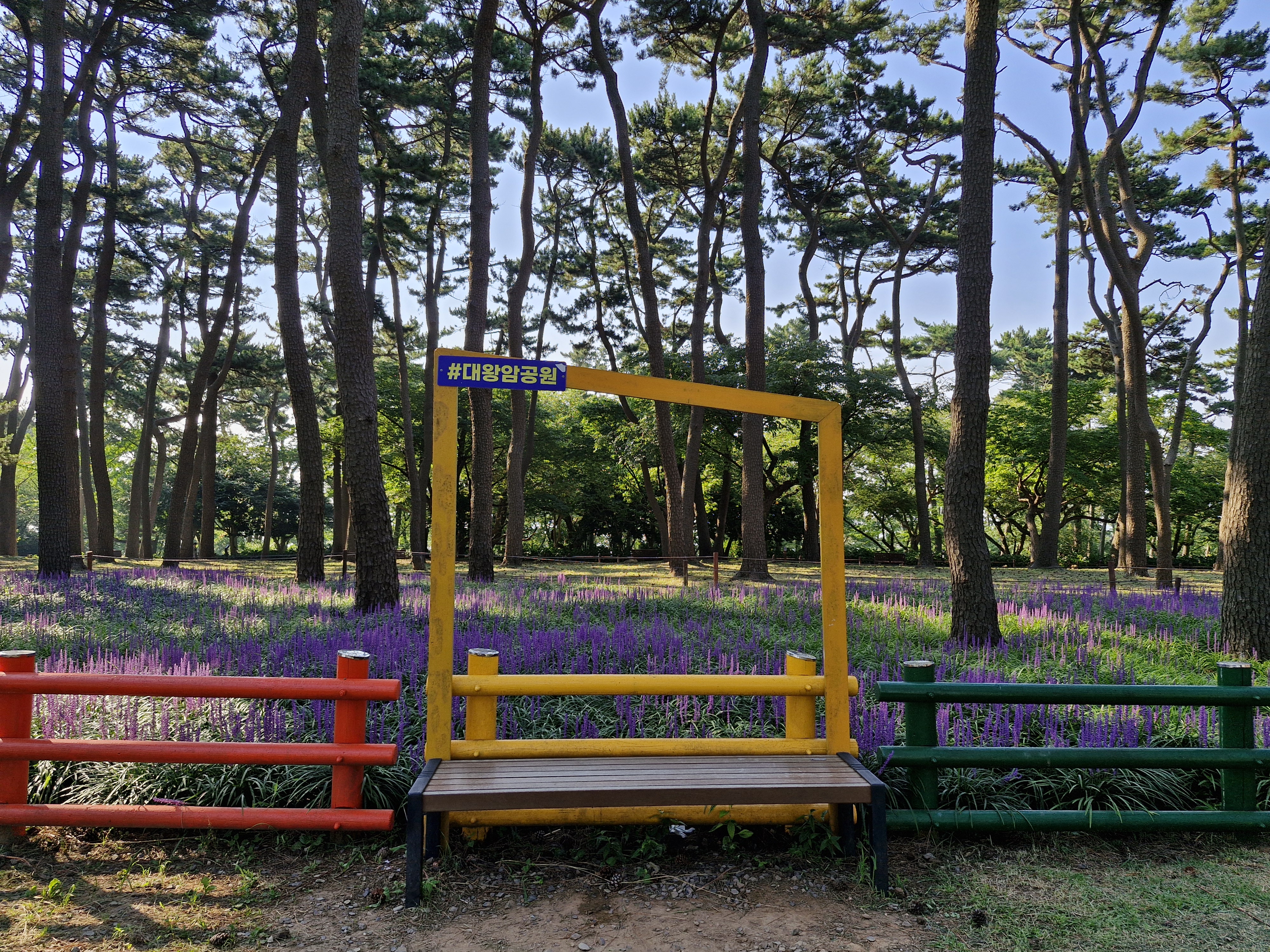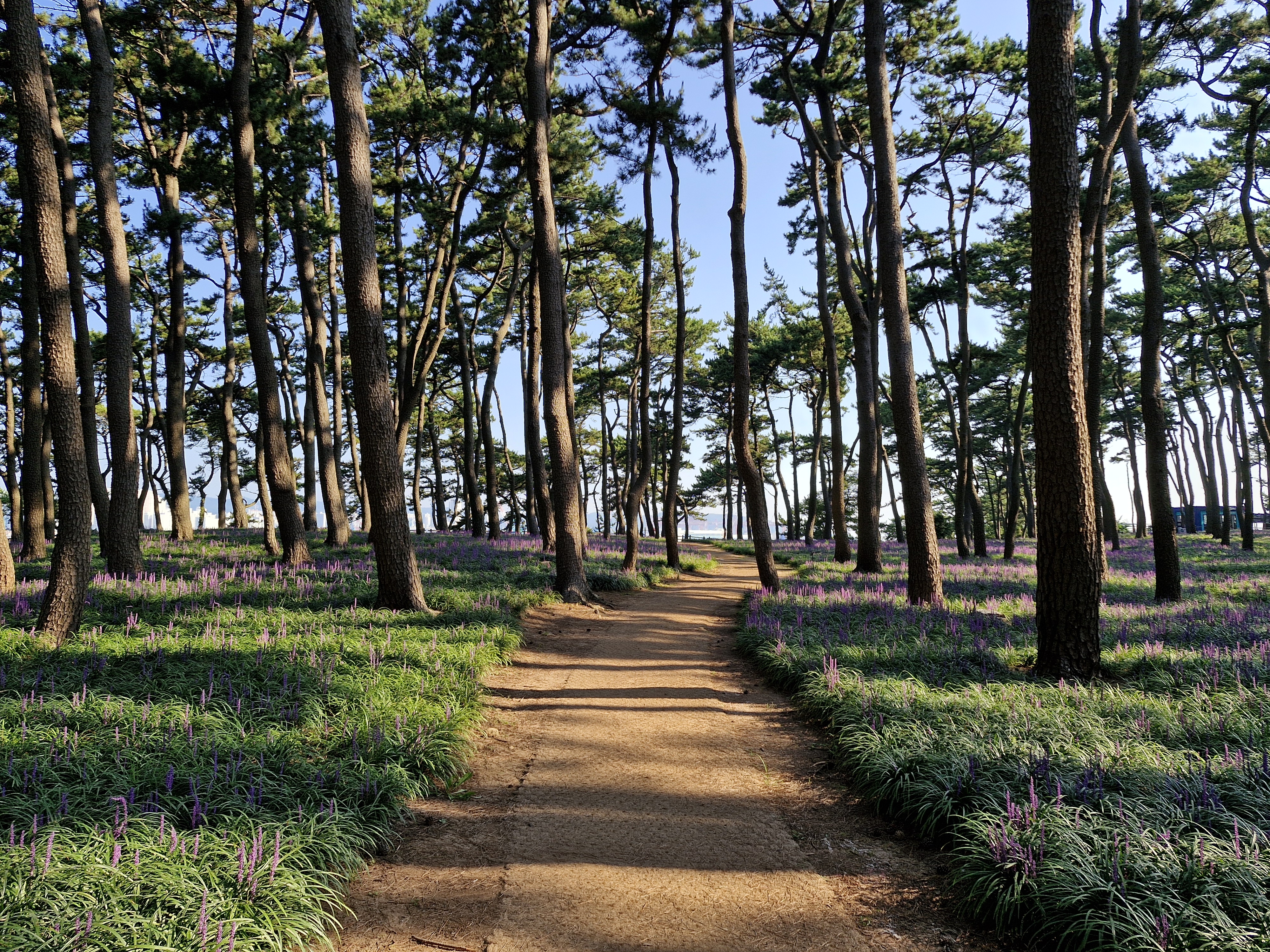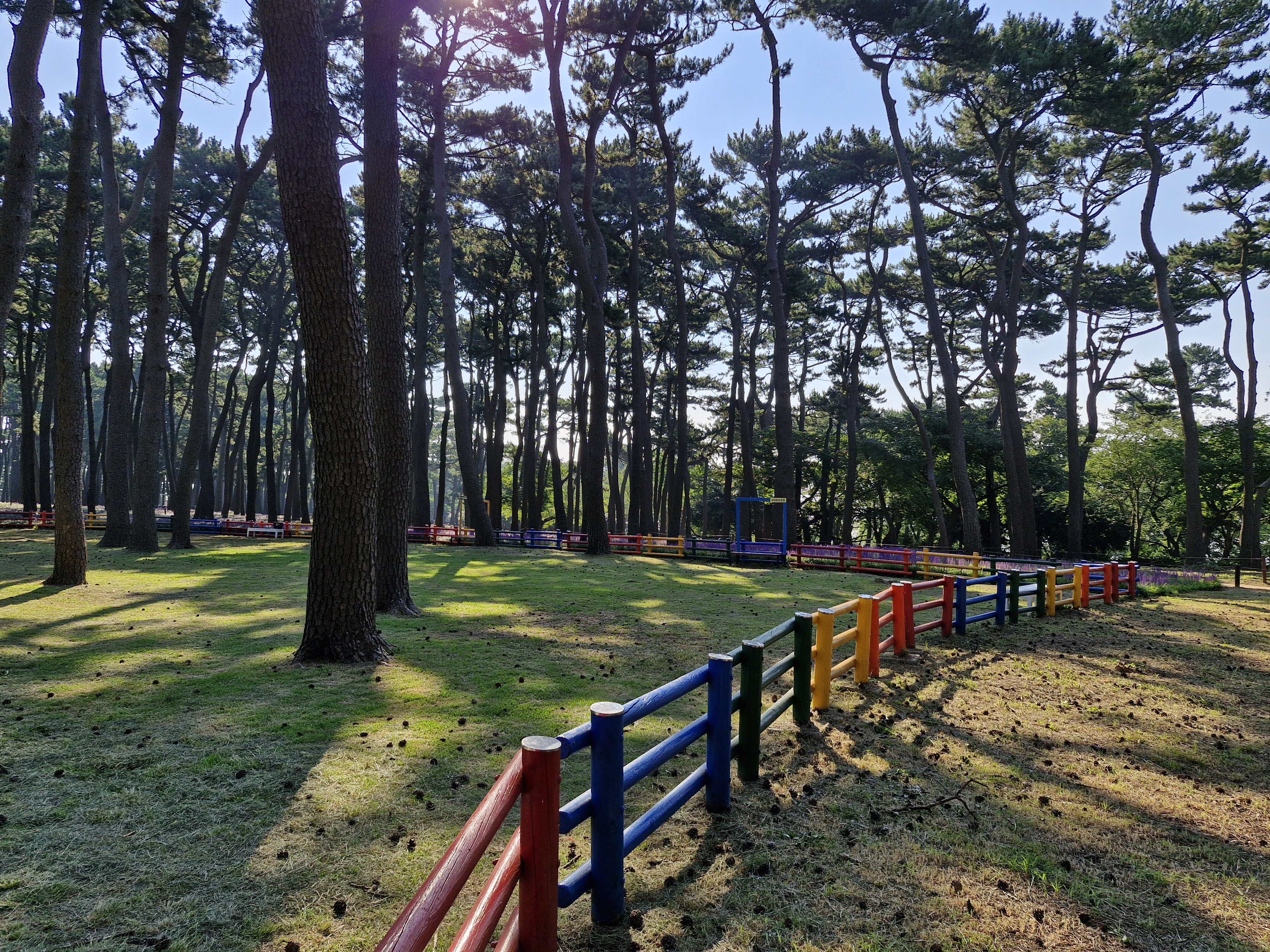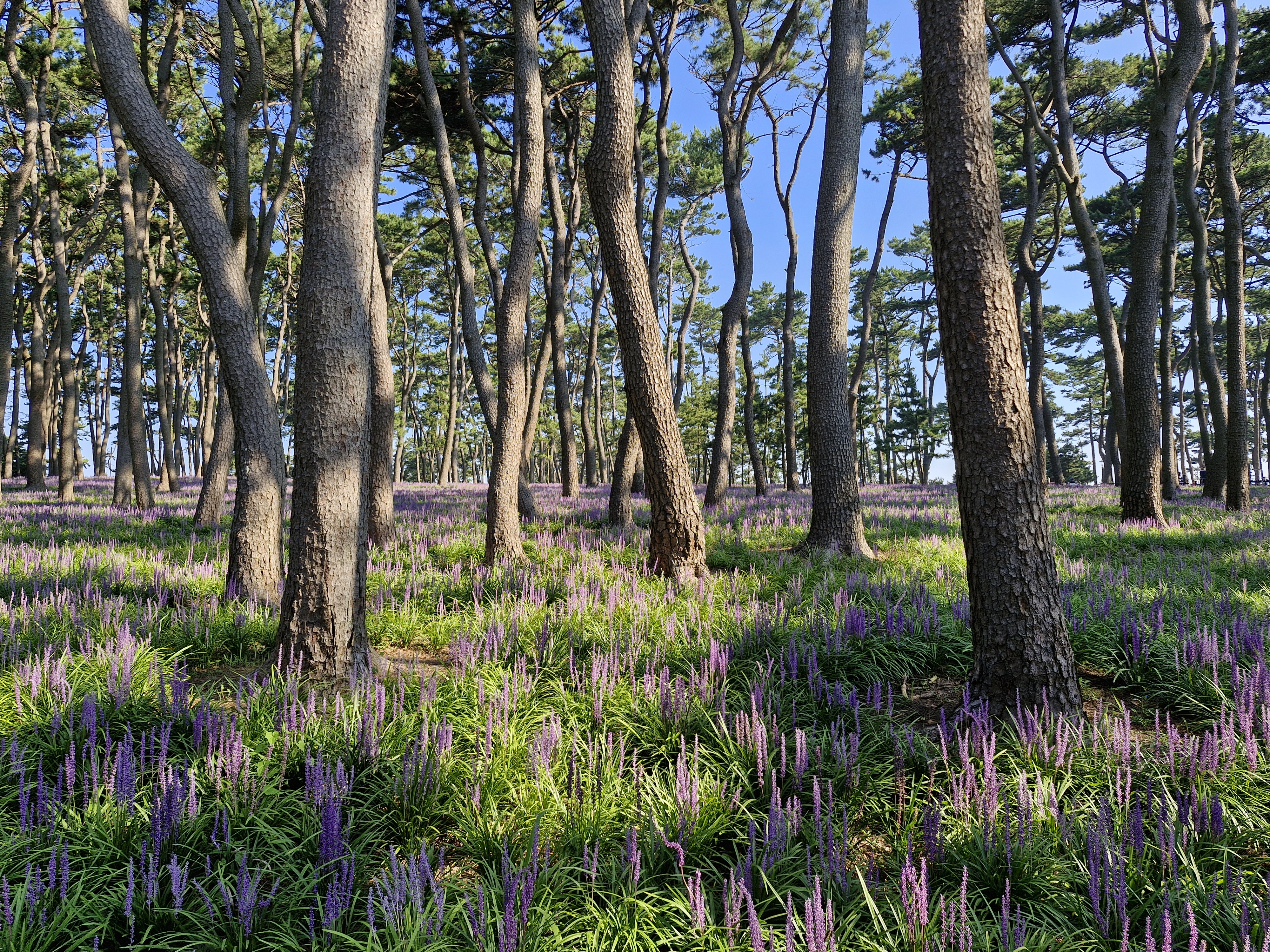 아름드리 해송과 어우러지는 보라색이 너무 이뽀이뽀 😀