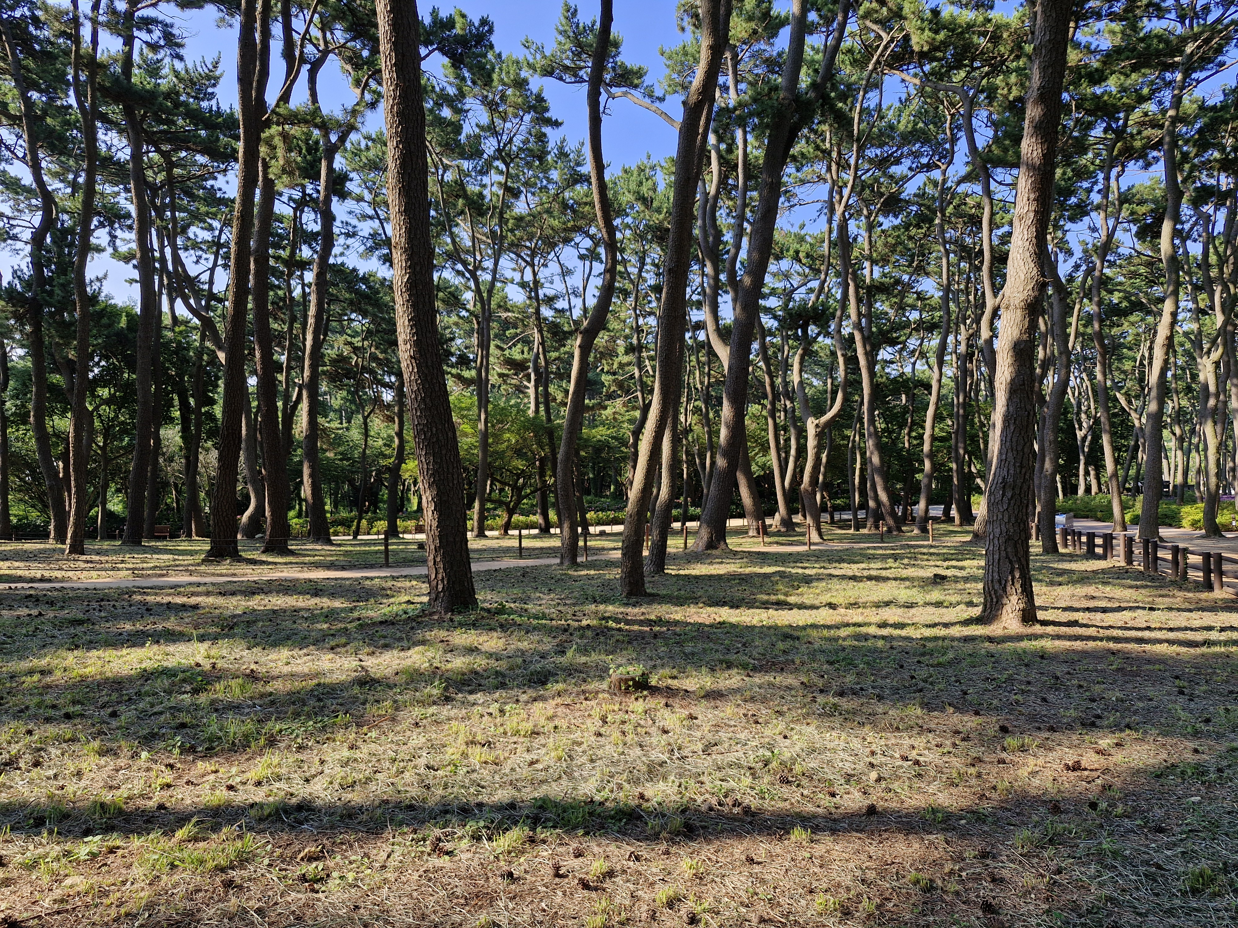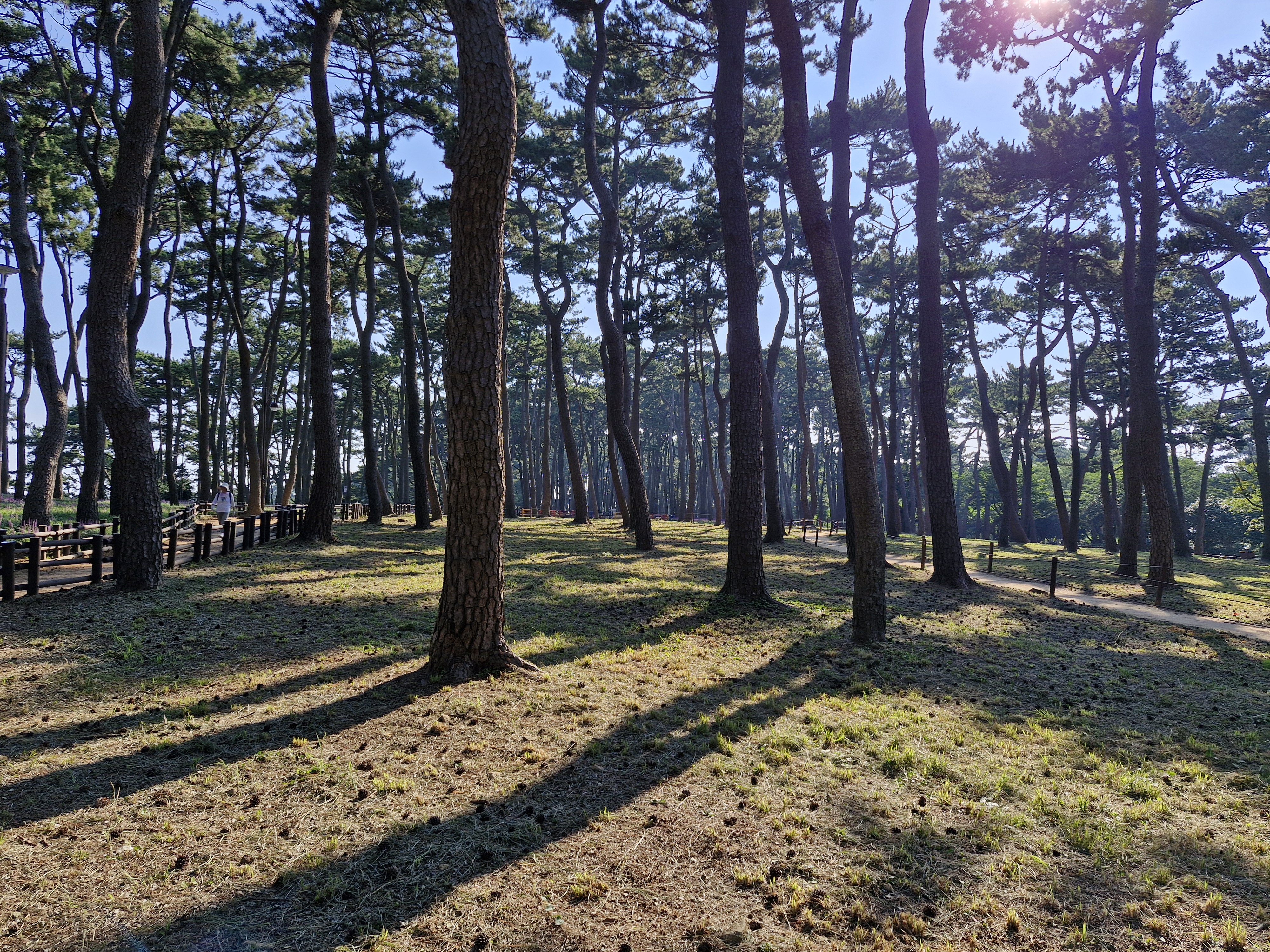 햇살이 아름드리 송림 아래를 기울기로 들어올 시간에 맞춰 공원에 들어선다.