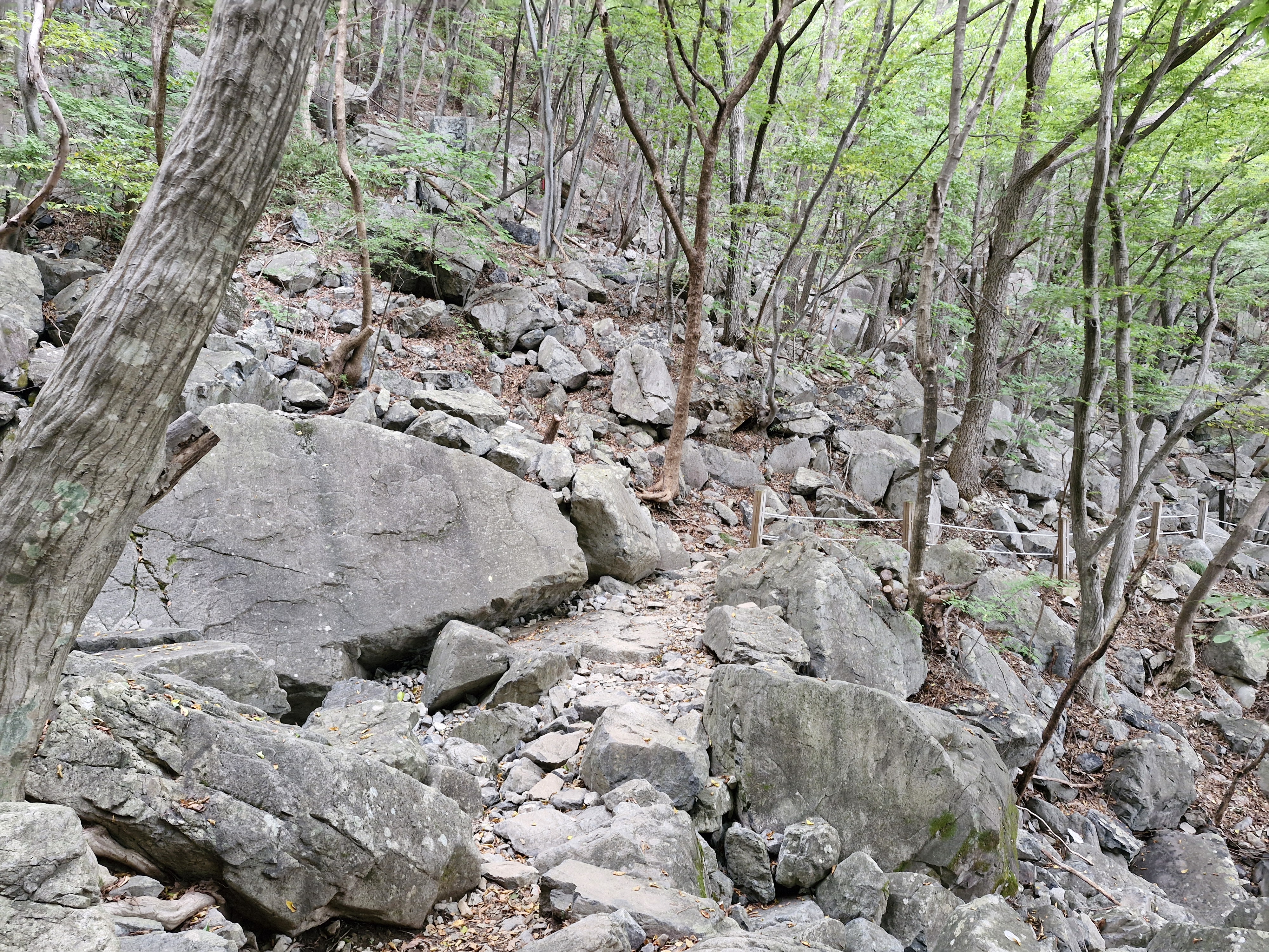 호랑이봉을 벗어나면 남근봉까지는 다시 조망이 없는 숲길이다.