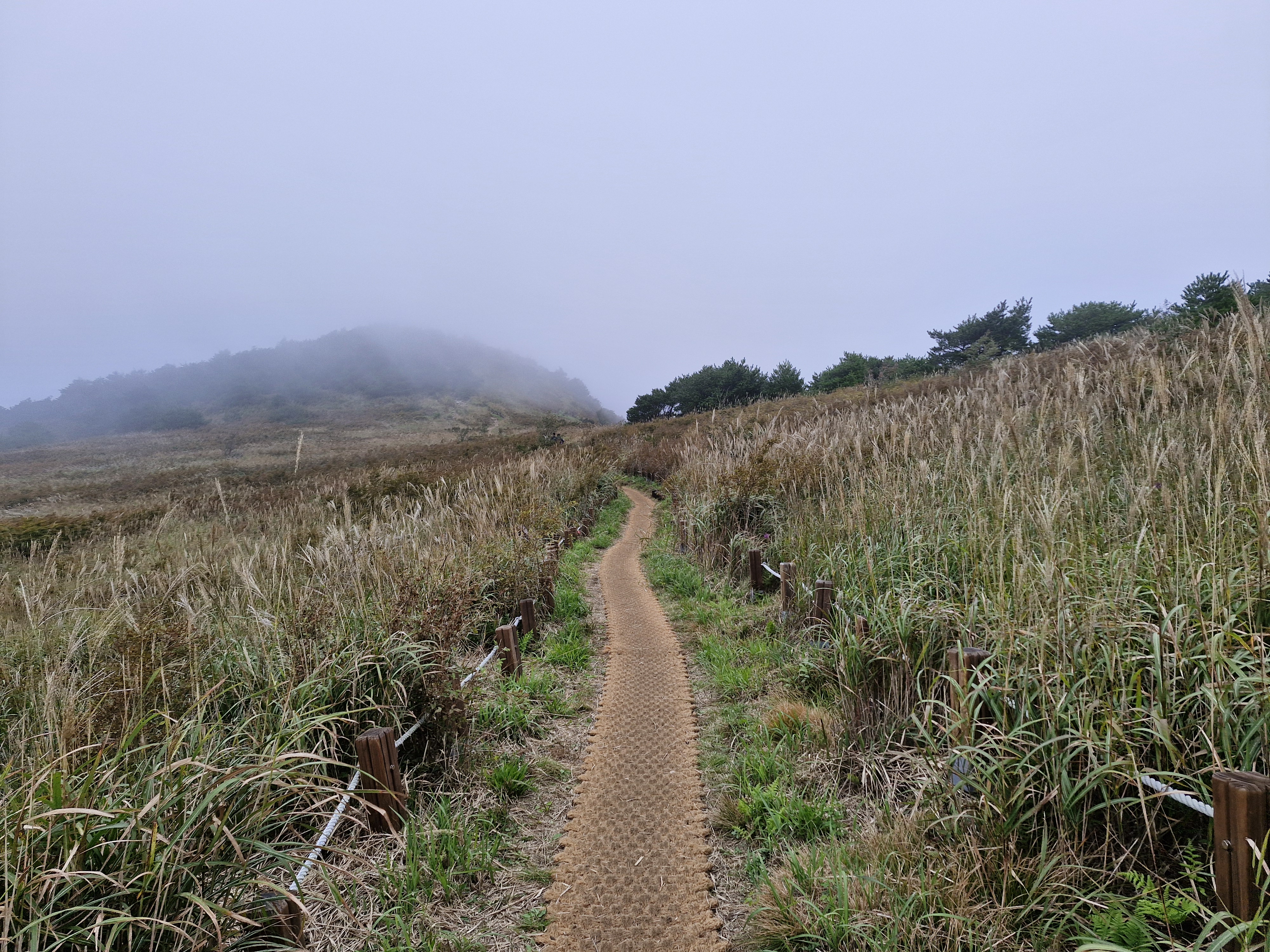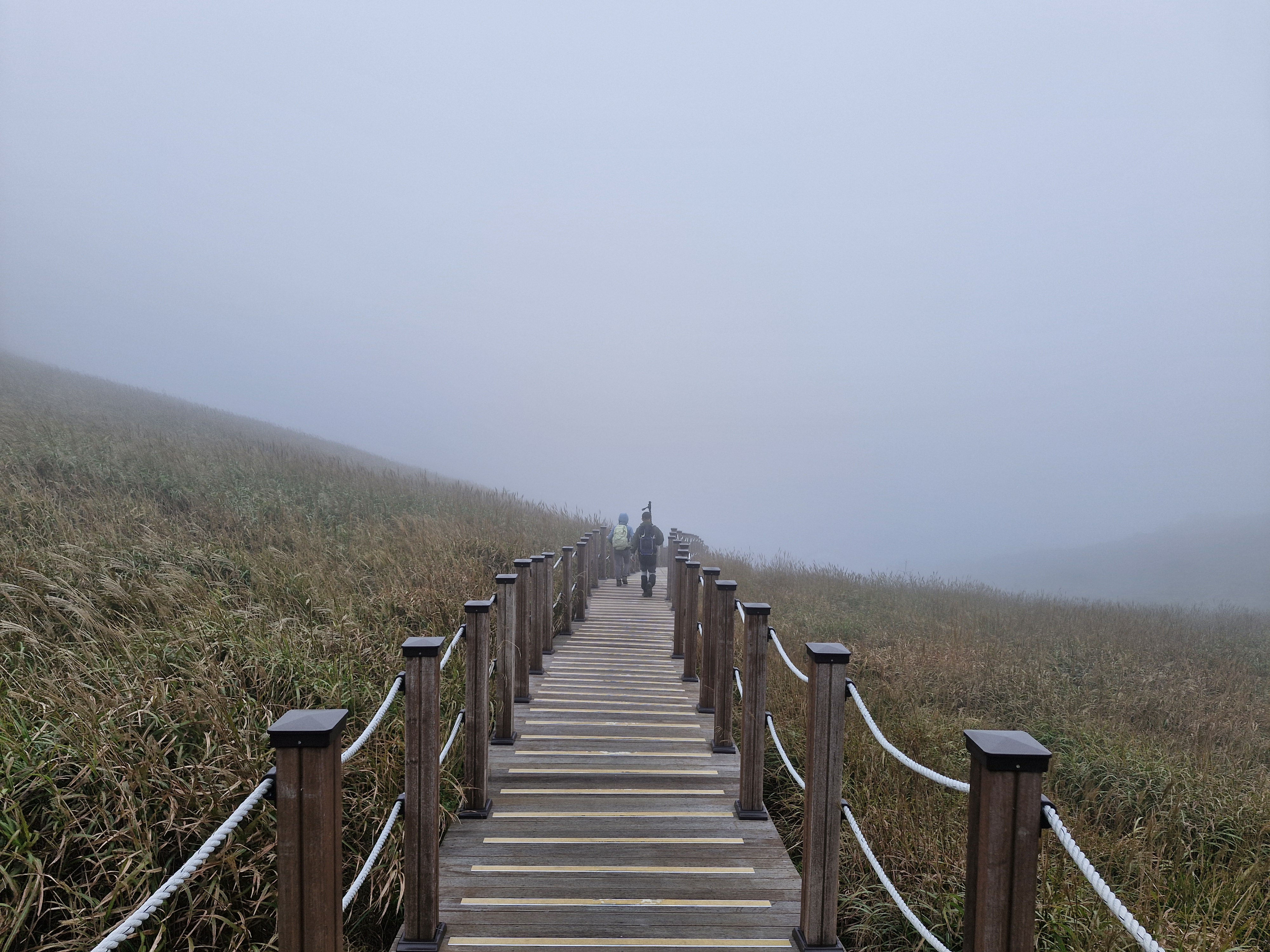 짙은 운무가 물기를 흩뿌리고 있으니 억새는 잿빛을 만들어 버렸다.