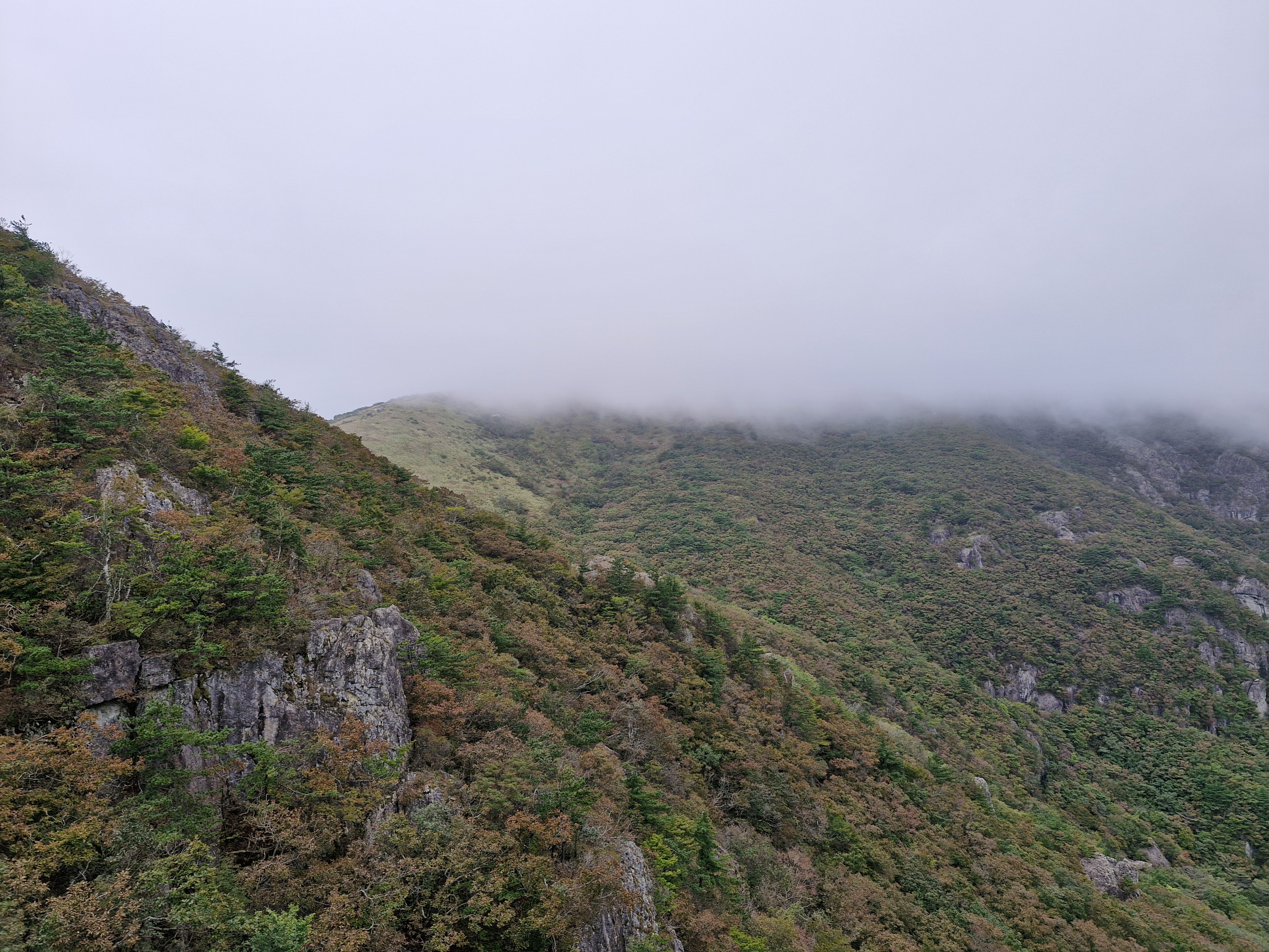 물기를 머금은 짙은 운무와 능선을 넘어가는 바람이 몸을 급격하게 식힌다.