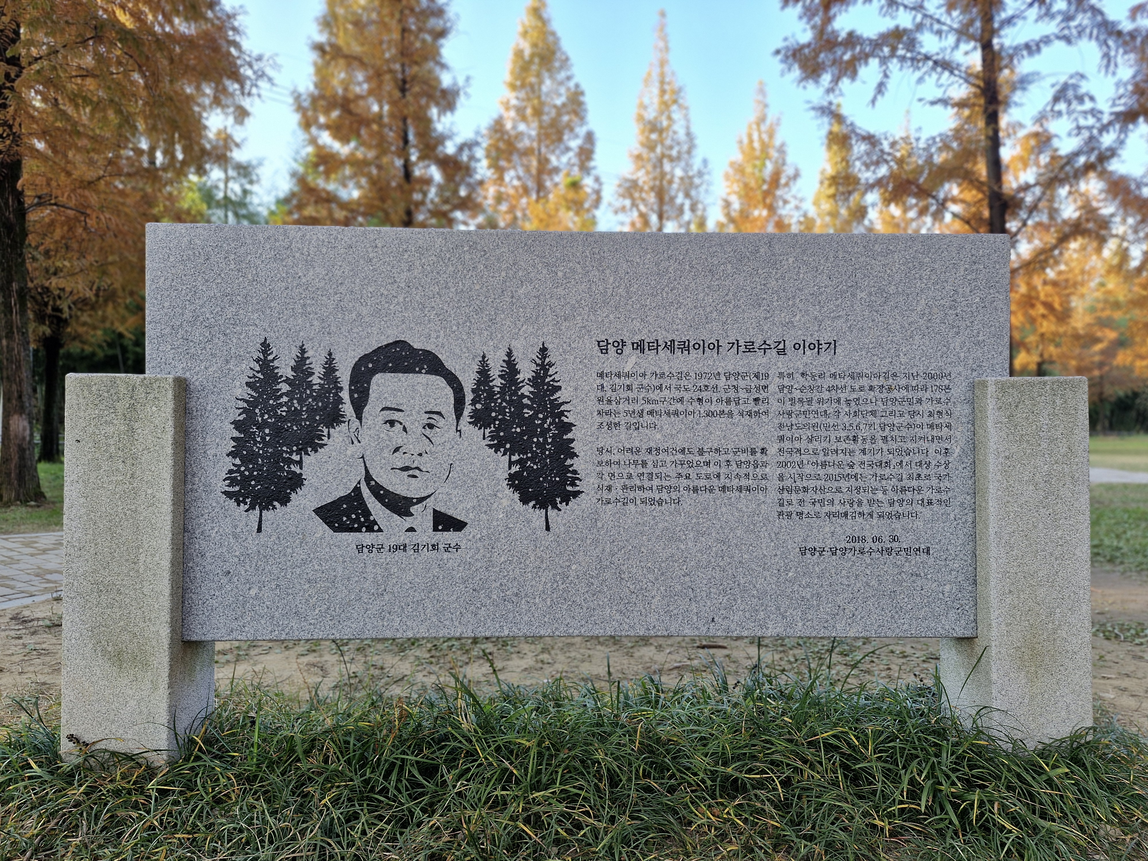 메타세쿼이아 랜드는 산림청과 ‘생명의 숲 가꾸기 운동본부’ 등에서 주관한 ‘2002 아름다운 거리 숲’ 대상을 수상했고, 2006년 건설교통부 선정 ‘한국의 아름다운 길 100선’의 최우수상을 받기도 했었다고...