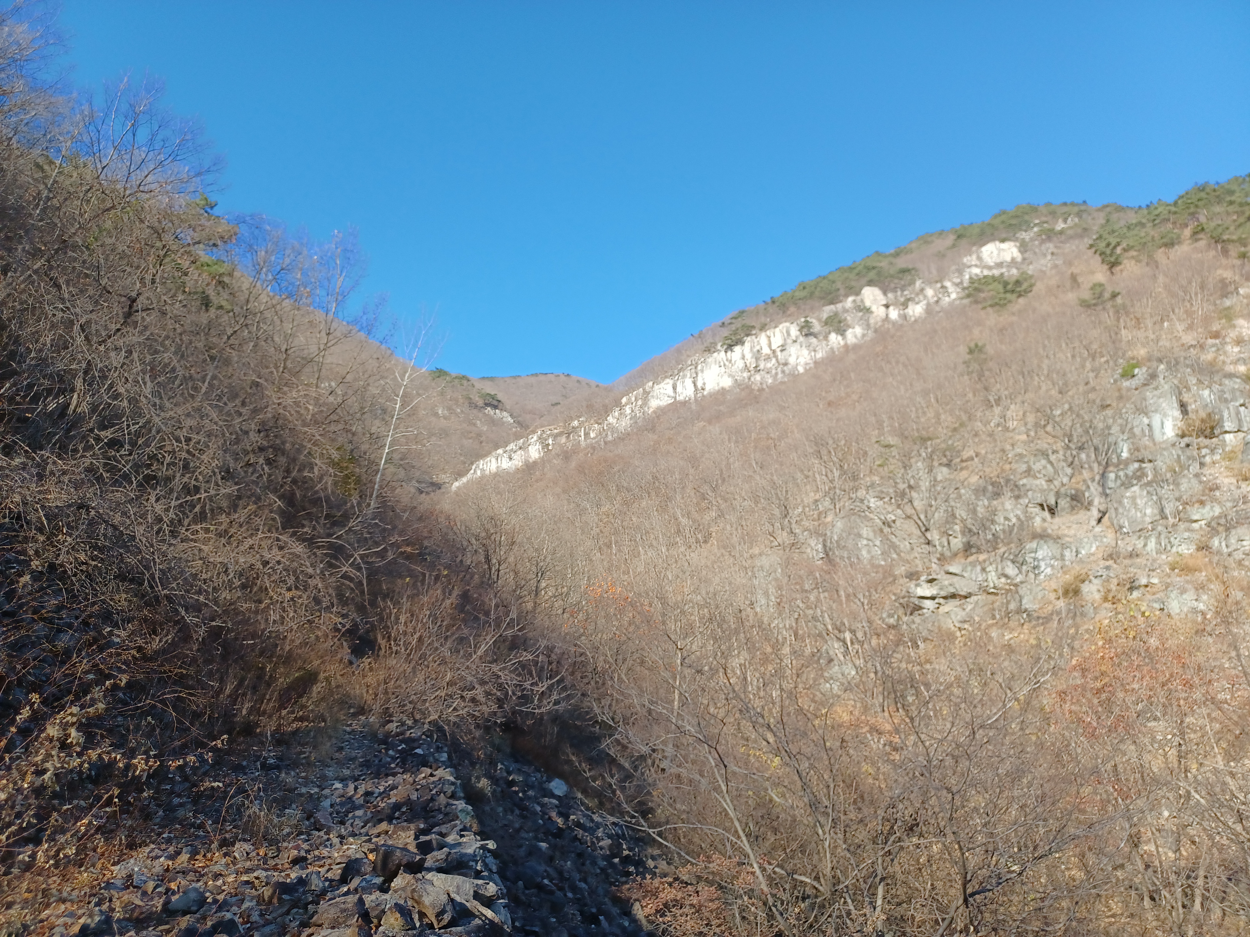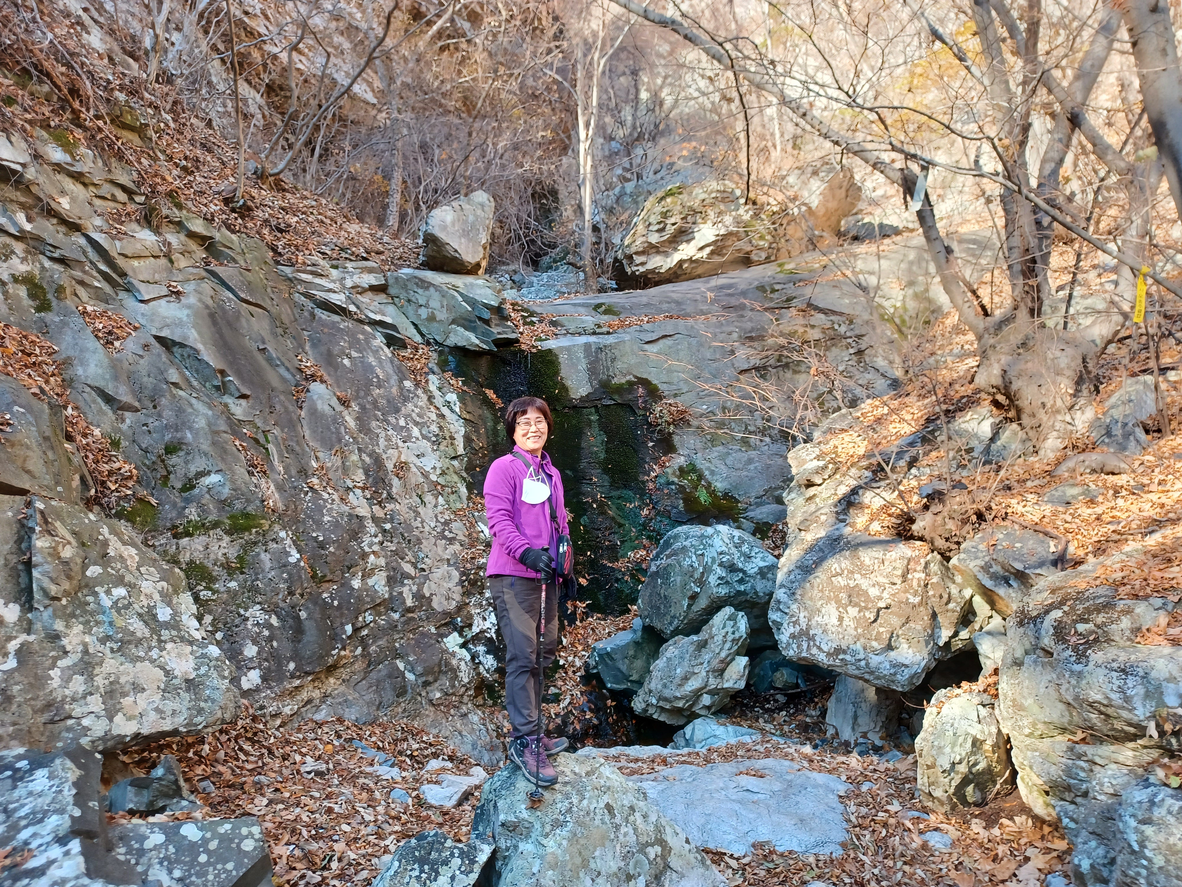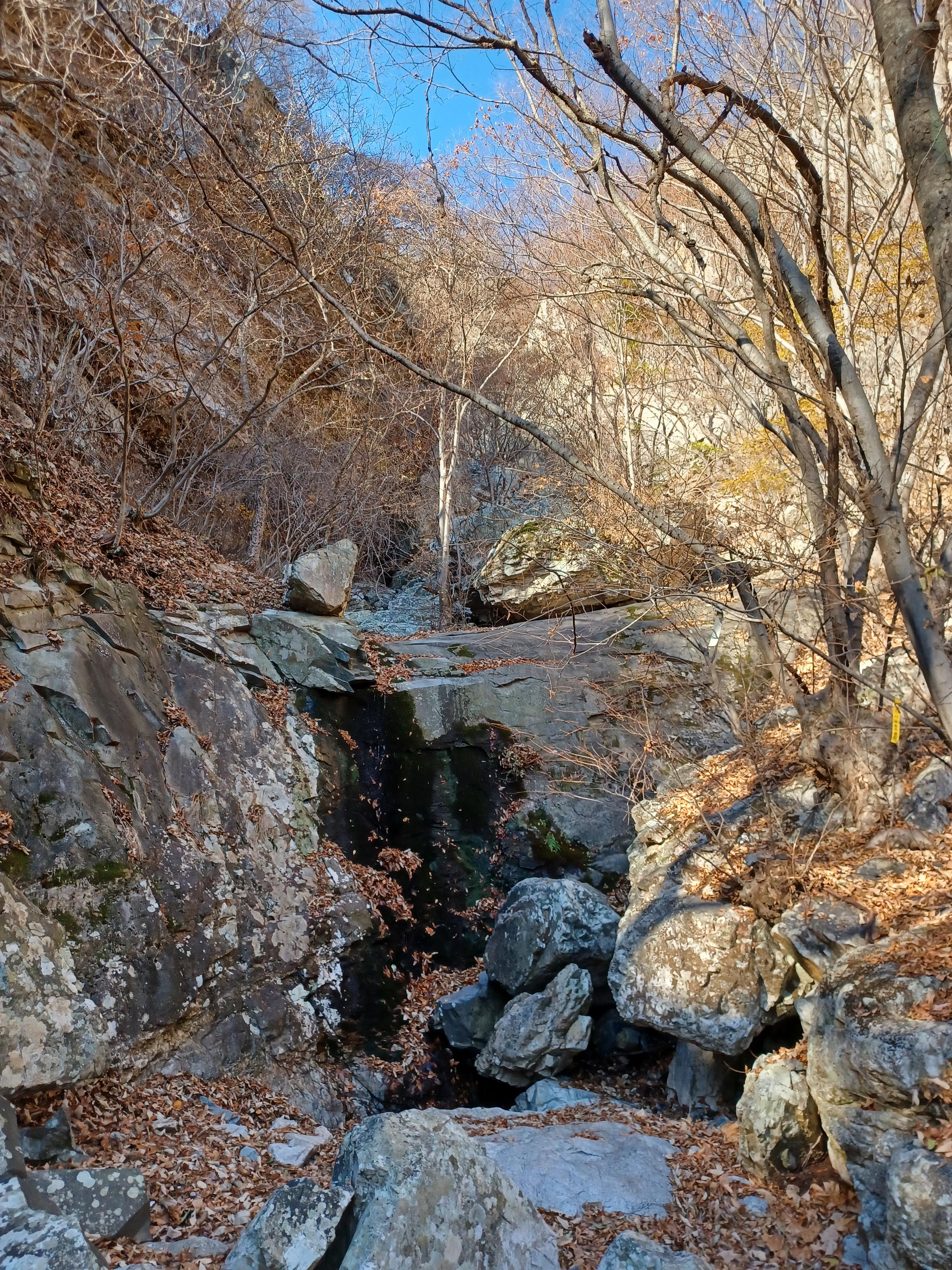 낙엽이 덮인 골짜기를 따라 걷는데 알싸한 공기가 참 맛있다.
