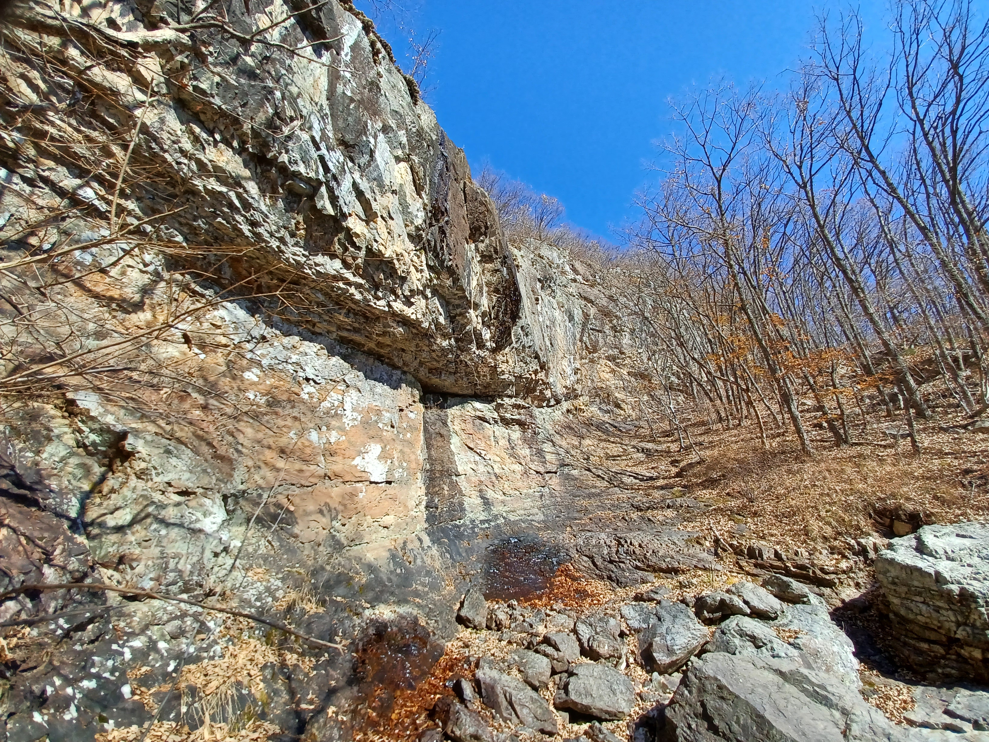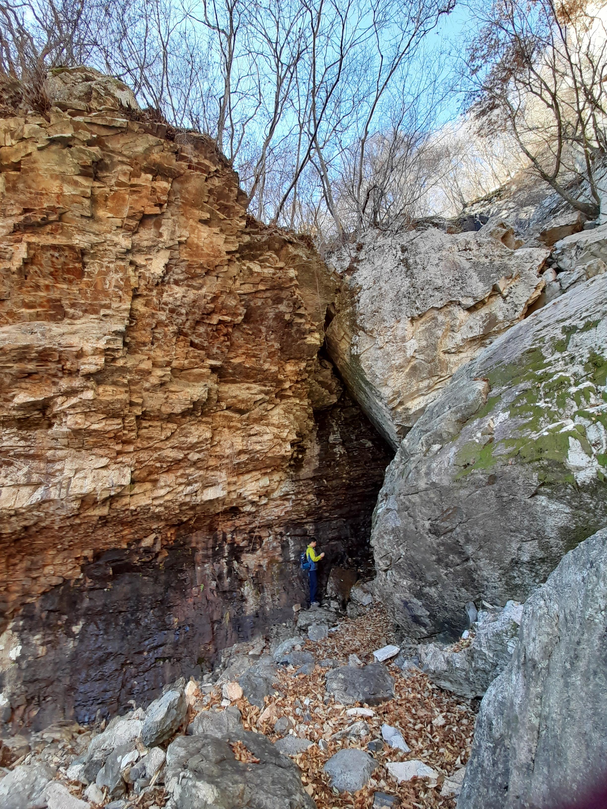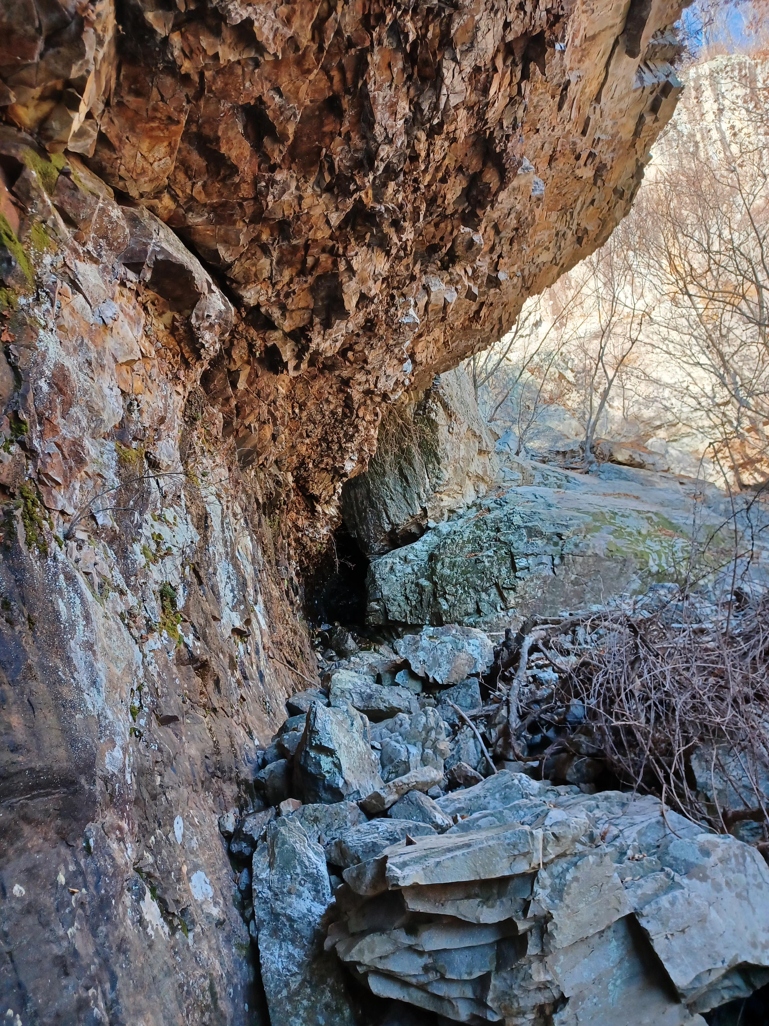 왼쪽으로 처마를 만든 거대한 암벽 안쪽으로 바위가 끼이면서 만들어진 바위굴이 만들어져 있다.