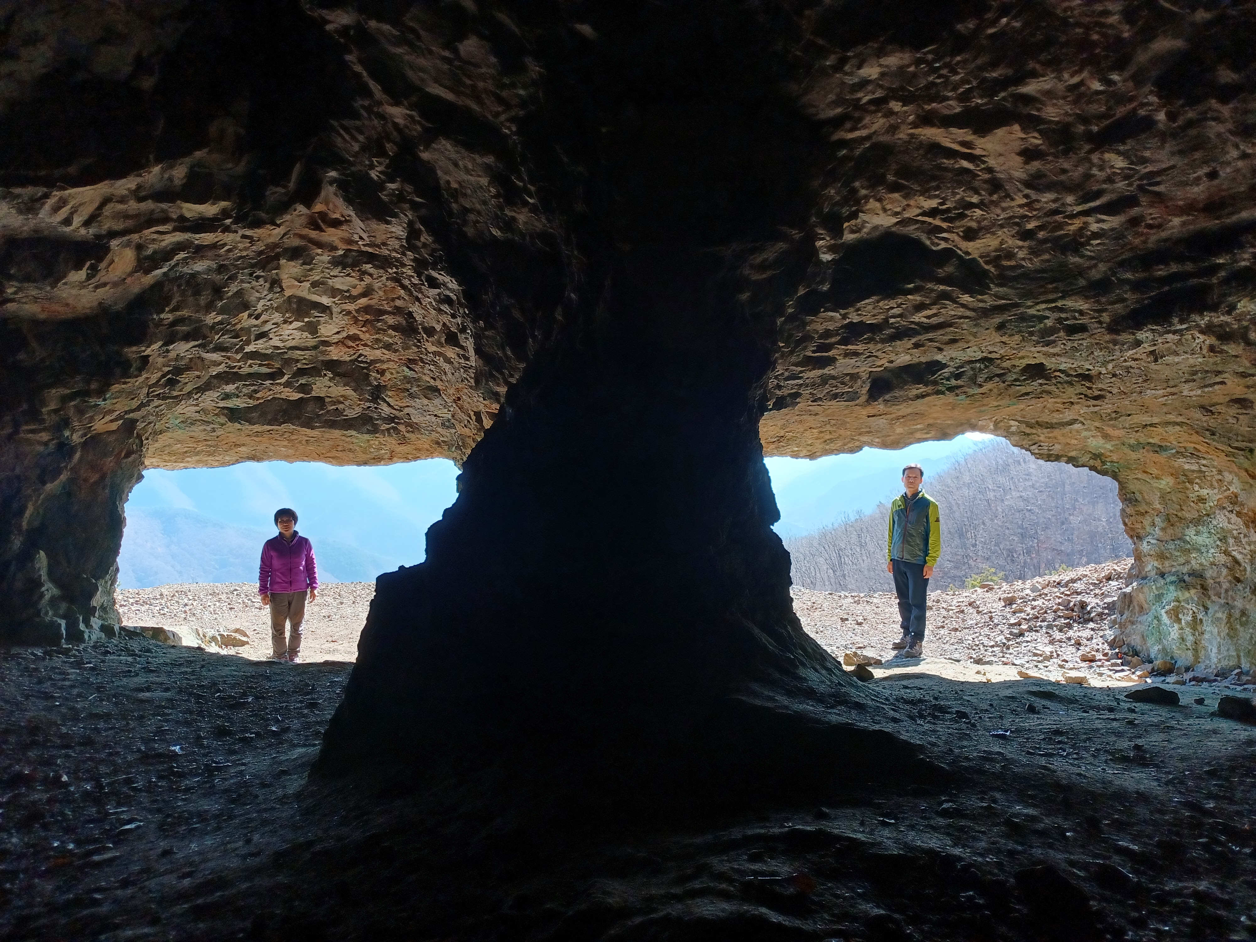 오른쪽 굴은 바닥으로 뚝 떨어져 이어지고 왼쪽 굴은 위쪽으로 뚫려져 있다.