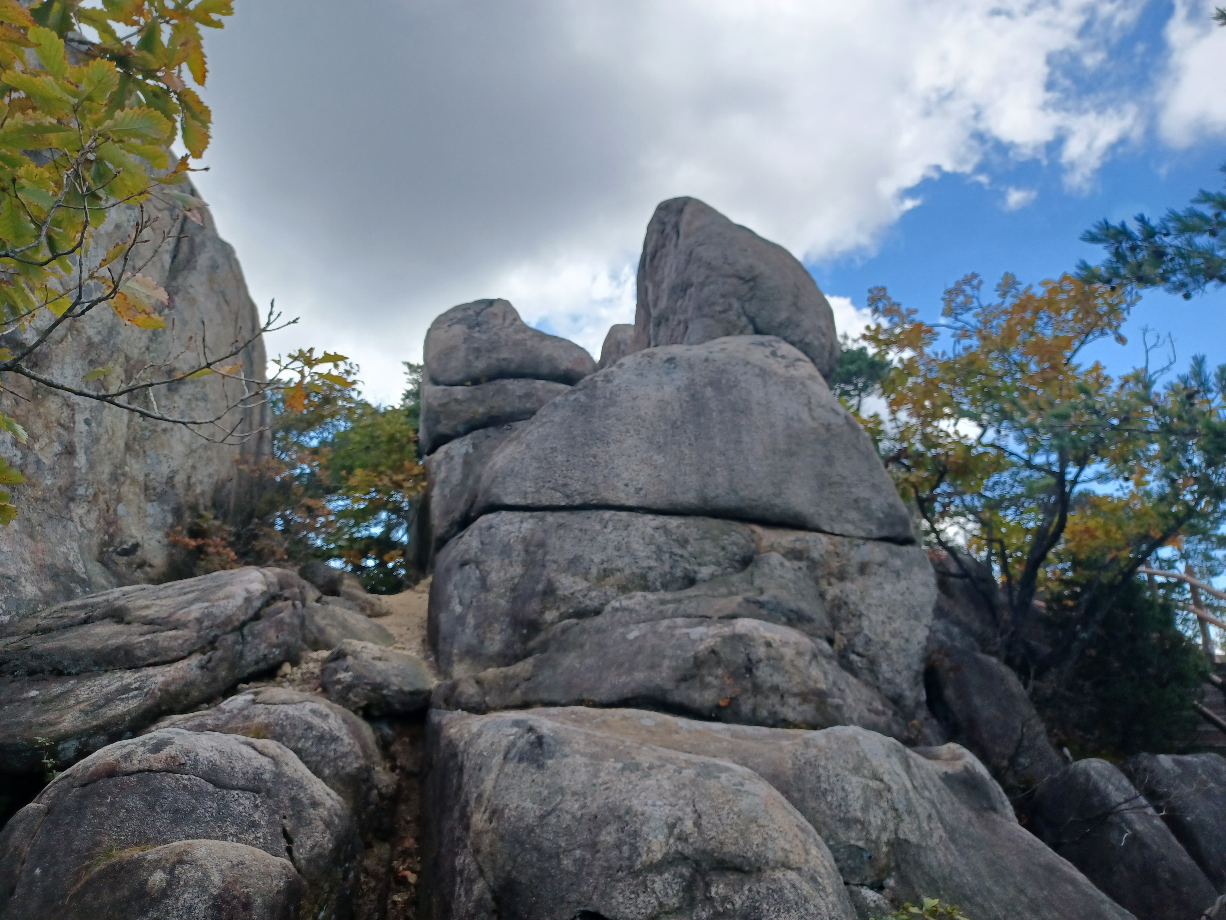 국사골로 내려서면서 지나온 부석을 돌아보고...