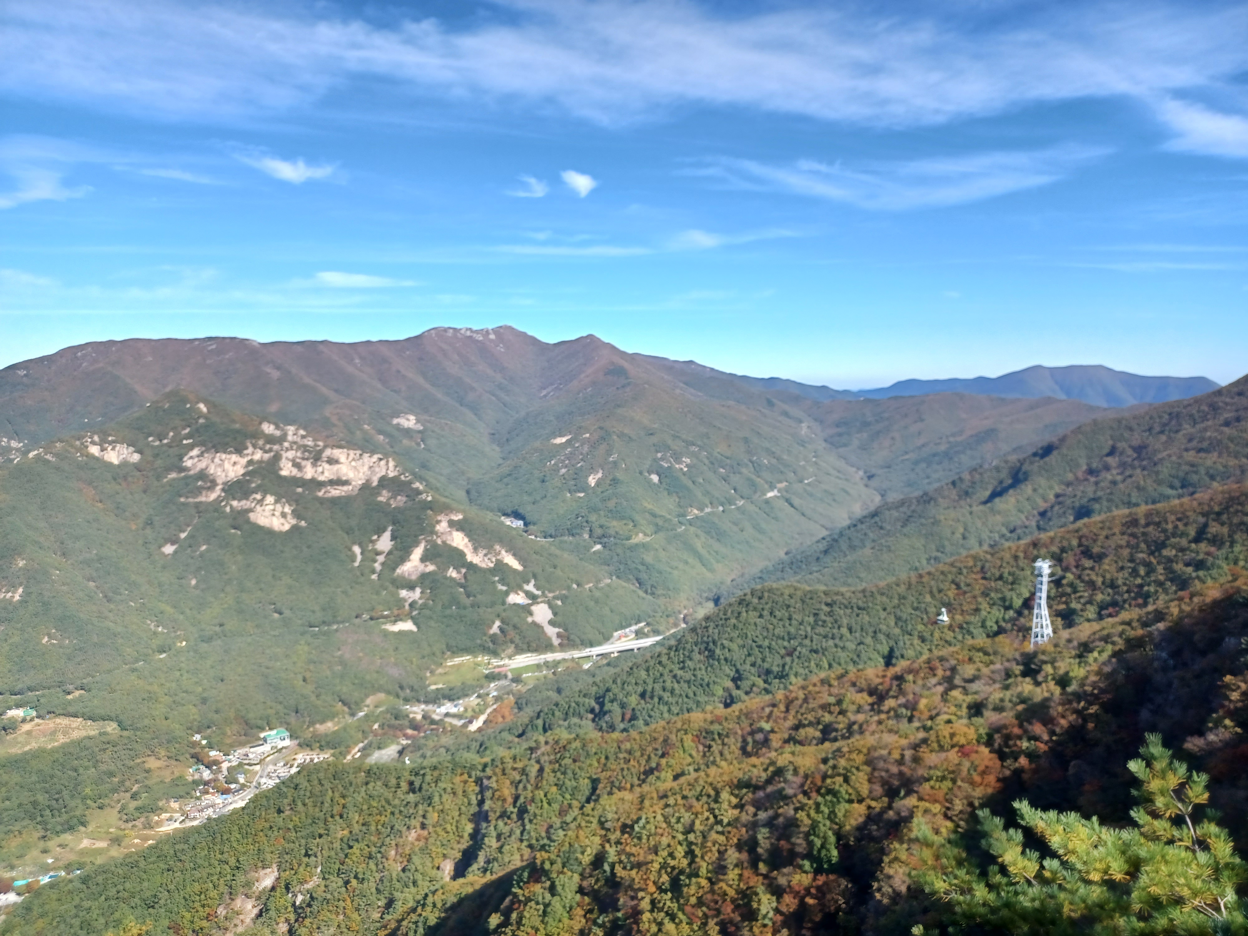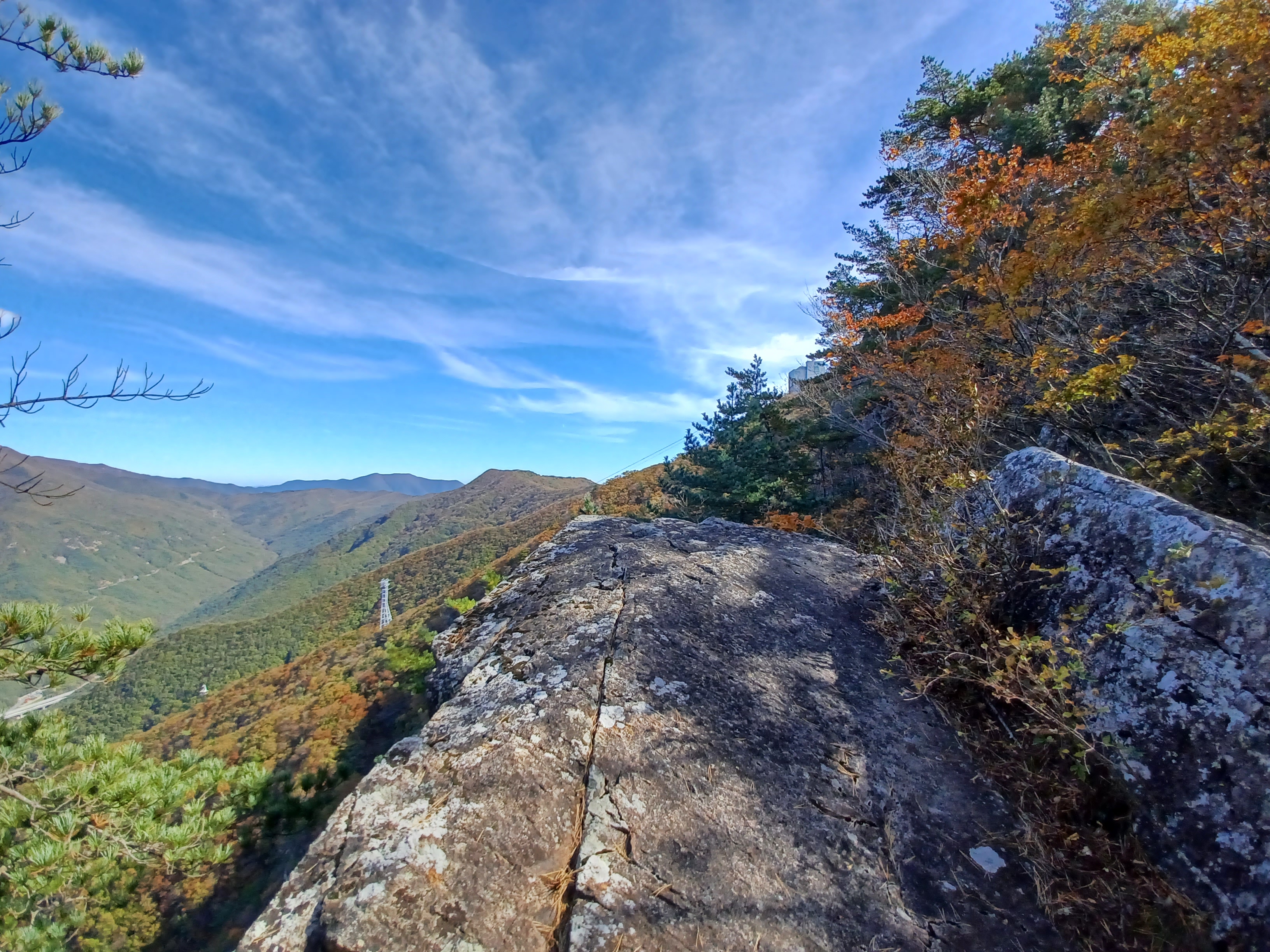 마지막 전망바위로 올라서면 케이블카 상부 시설과 하부 주차장까지 한눈에 담을 수 있다.