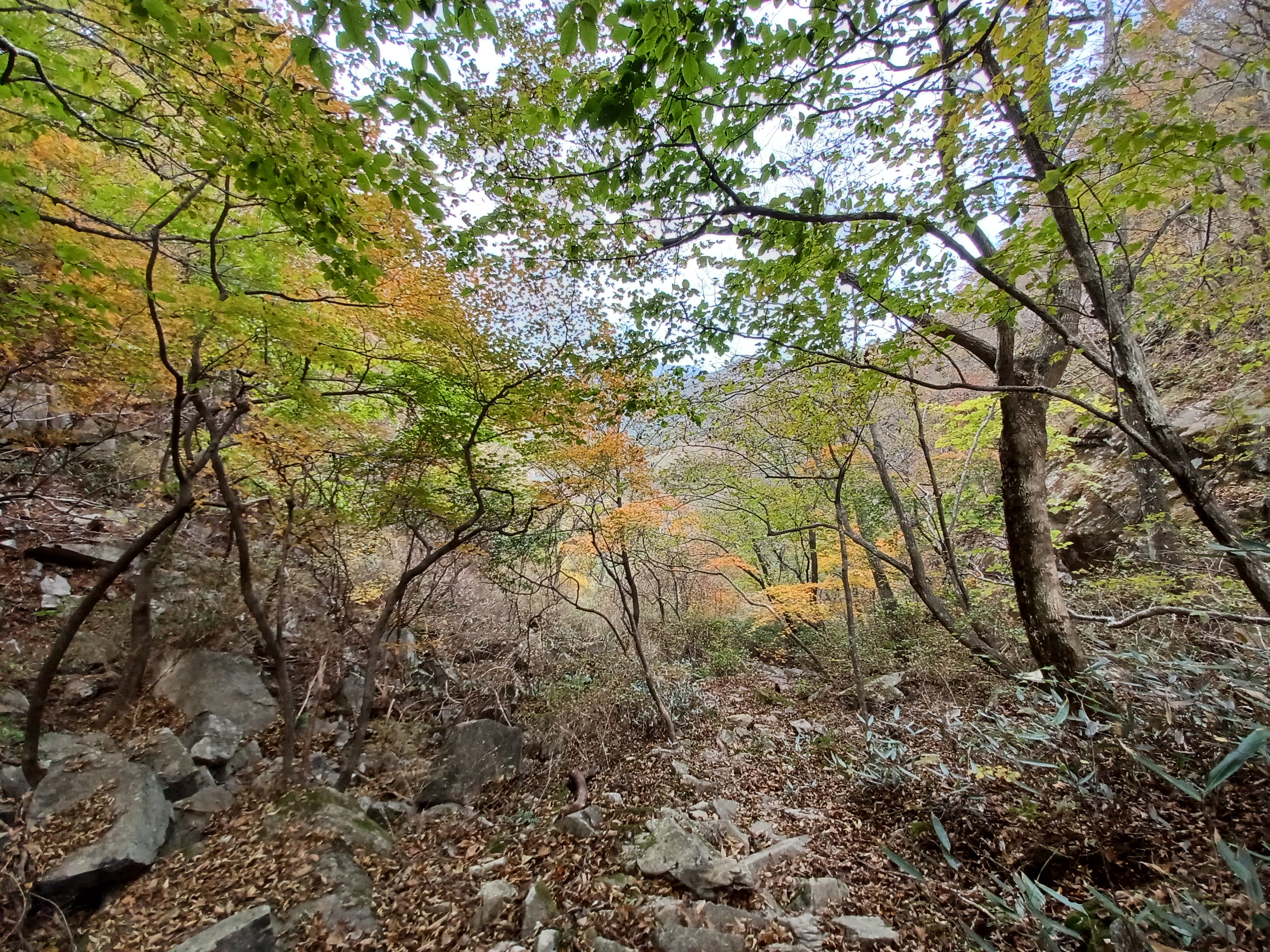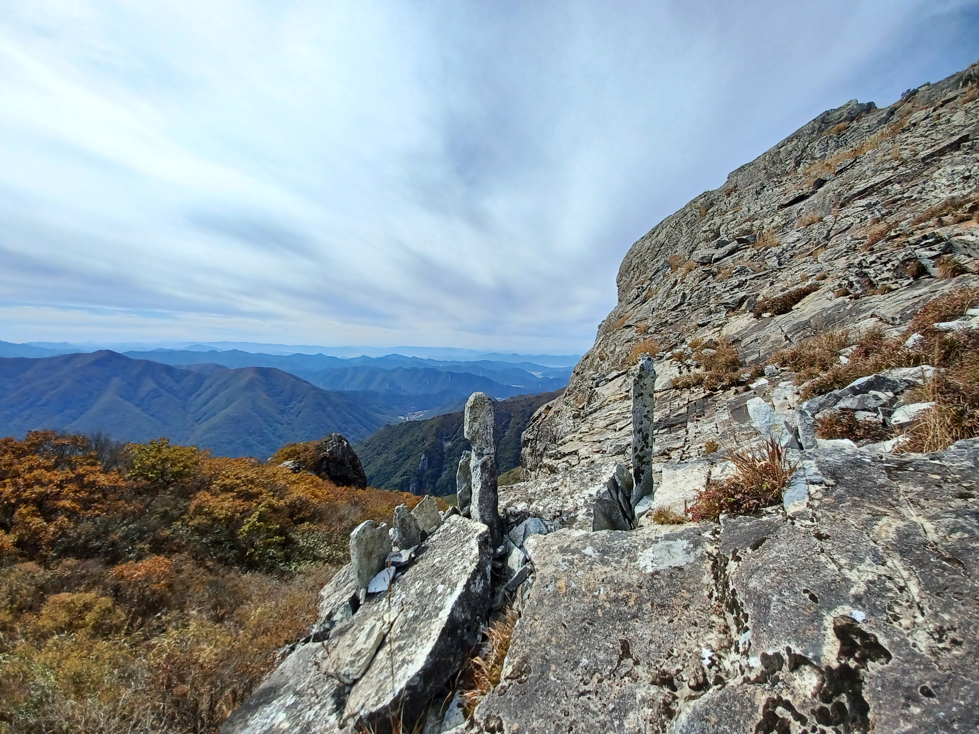 잠시 등로를 벗어나 너덜겅에서 골짜기의 멋을 한눈에 담아본다.
