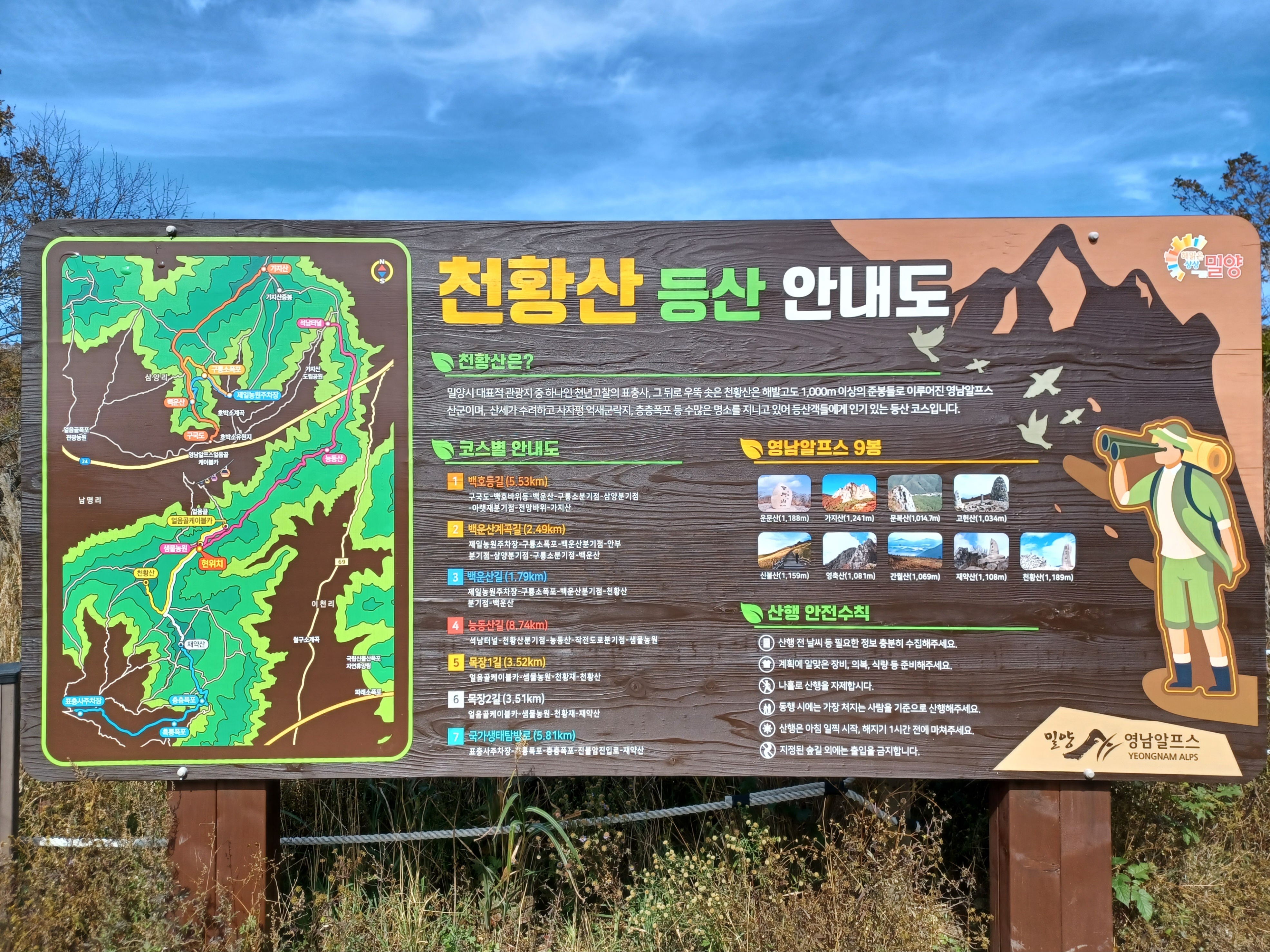 천황사를 지나고 얼음골 관리사무소 앞으로 내려서는 것으로 산행을 마무리한다.