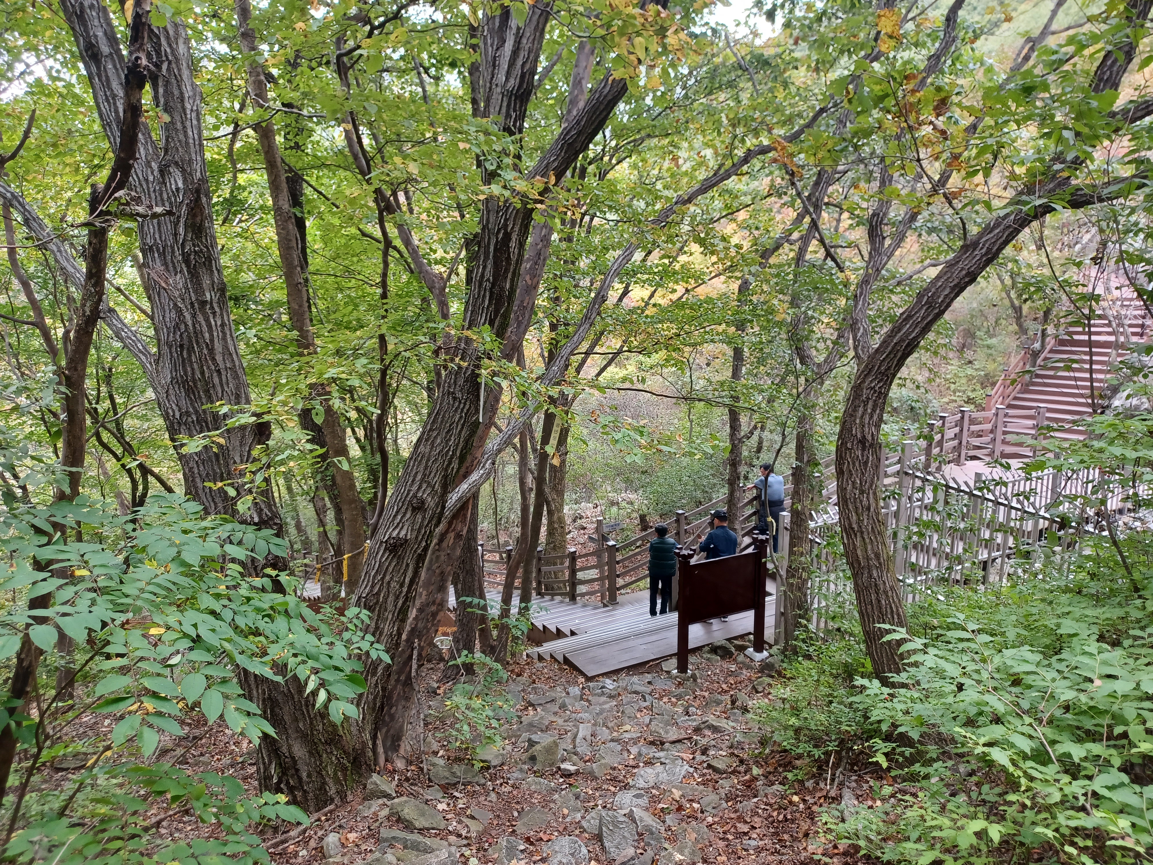 골짜기로 내려서면 여기서부터는 얼음골 결빙지까지는 급경사의 돌계단이다.